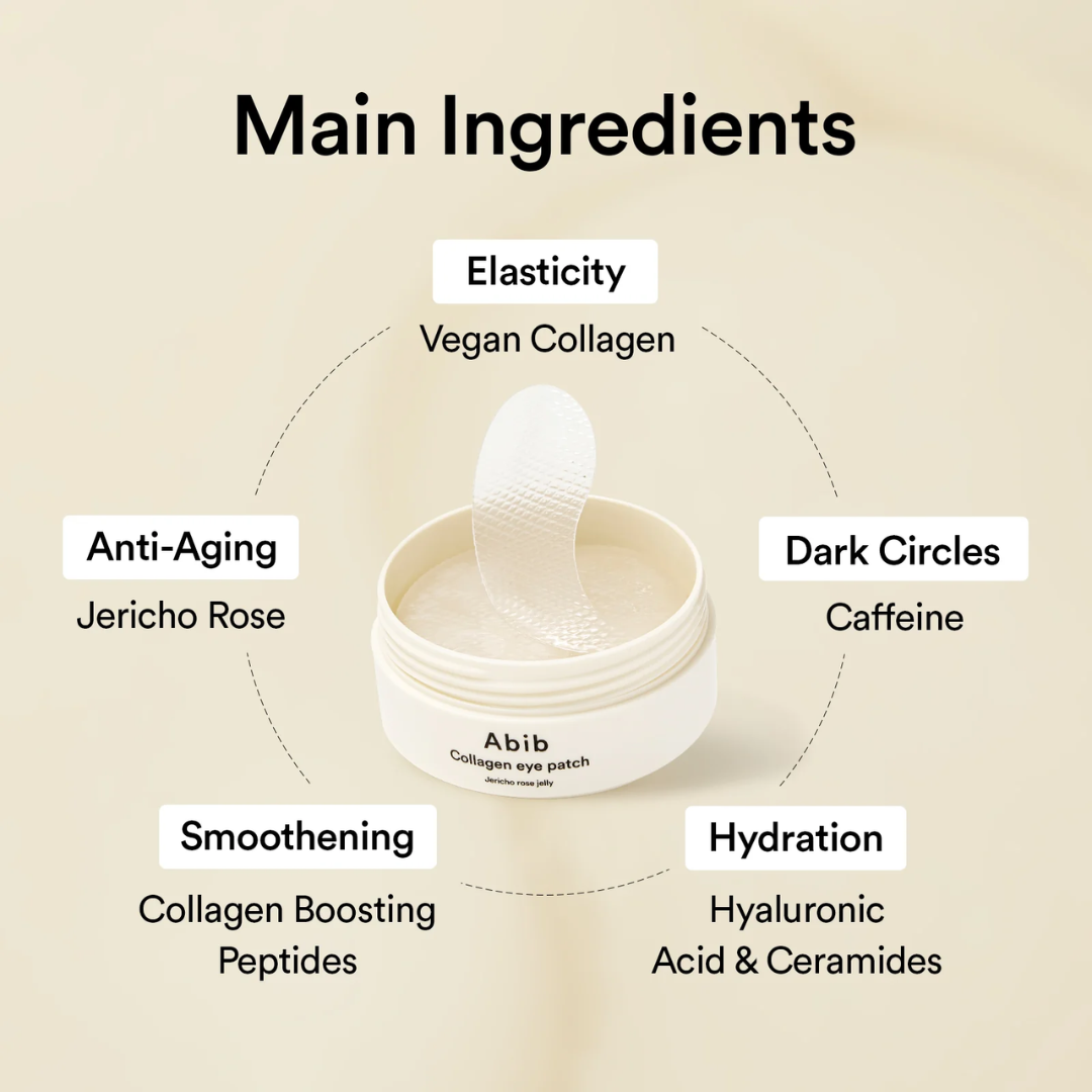 Cuide da área dos olhos com os patches Abib Collagen Eye Patch Jericho Rose Jelly para um olhar mais descansado e rejuvenescido!
