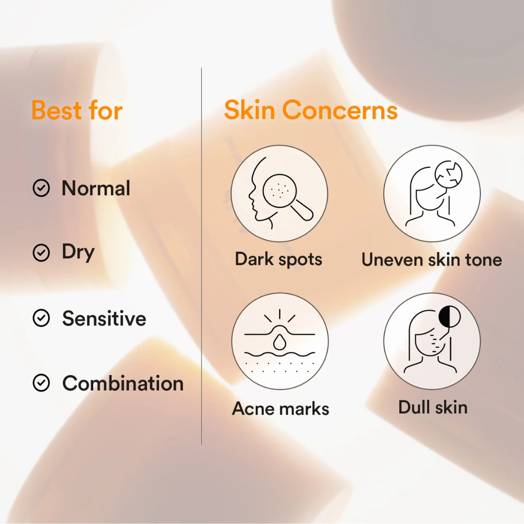 Vitamina C (Ácido Ascórbico): Ilumina e protege contra danos oxidativos.