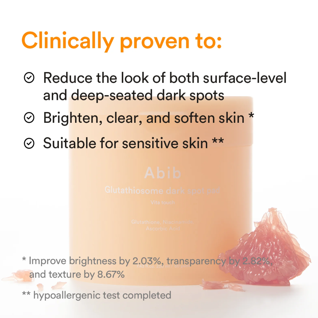 Transforme sua pele com os pads Abib Glutathiosome Dark Spot Pad Vita Touch e conquiste um tom mais uniforme e iluminado!
