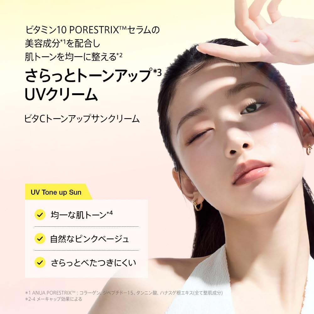 ANUA Vitamin C Tone Up Suncream é o produto 3 em 1 definitivo para quem busca praticidade e perfeição: ele combina proteção solar de amplo espectro, tratamento clareador e correção de tom (primer).