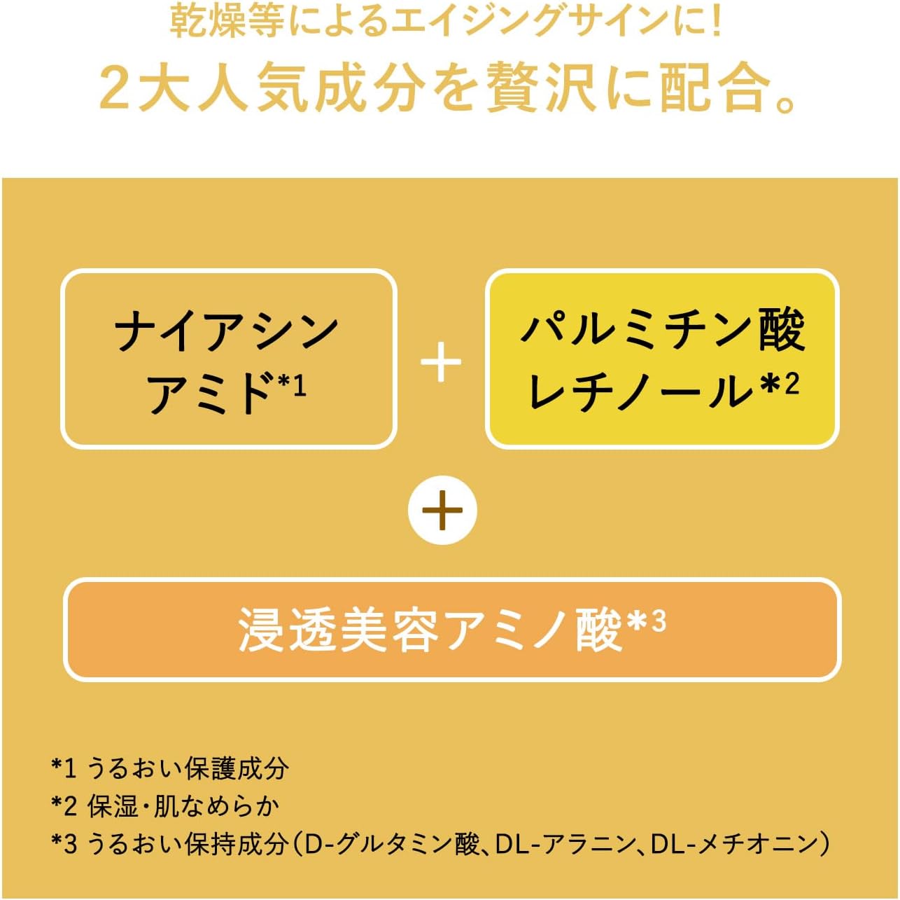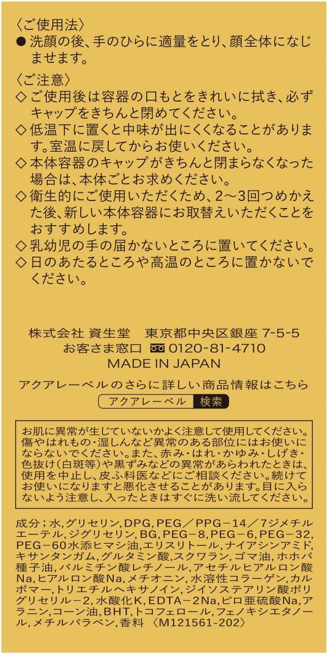 Água, glicerina, DPG, éter dimetílico PEG/PPG-14/7, diglicerina, BG, PEG-8, PEG-6, PEG-32, PEG-60 óleo de rícino à base de água, elitritol, niacinamida, goma xantana, ácido glutamínico, esqualano , óleo de gergelim, óleo de semente de joba Thinol, acetato de ácido quilhialurônico de sódio, ácido hialurônico de sódio, metionina, colágeno solúvel em água, carbômero, trietilhexanoína, diisostearato de poliglicerila – 2, hidróxido de potássio, EDTA-2Na, pirossulfato de sódio, alanina, óleo de milho, tocoferol, Fenoxietanol, Metilparabenol, Metilparabenol, Metilparabenol, Metilparabenol, Metilparabeno. Fragrância