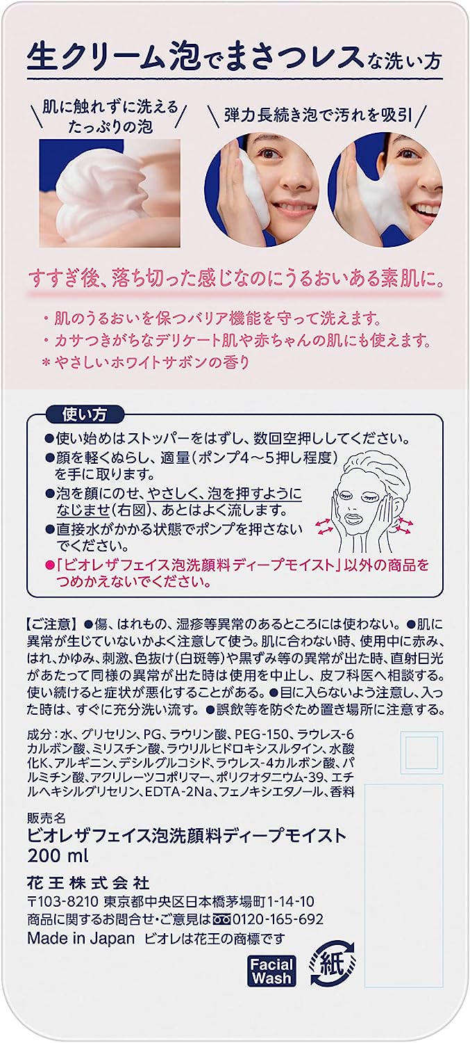Uma espuma cremosa volumosa, uma das melhores da história dos sabonetes faciais Biore, remove a sujeira.