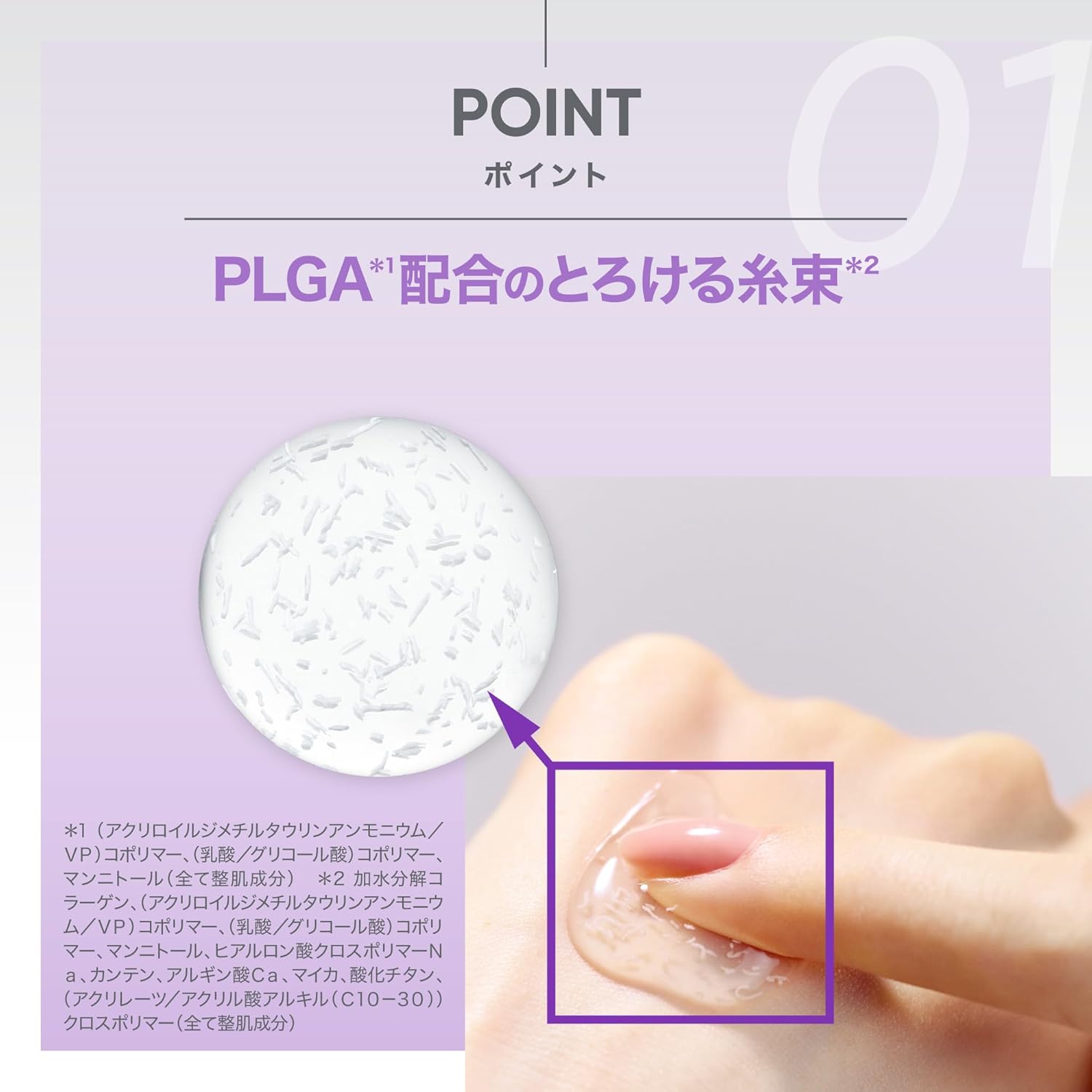 Água, Lactobacillus ferment (fermento de lactobacilos), Propanediol, Glicerina, Metilpropanodiol, 1,2-Hexanodiol, Lactobacillus ferment (fermento de lactobacilos), Colagénio (20 ppm), Extrato de colagénio (20 ppm), Extrato de Potentilla Anserina (erva-dos-ursos), Extrato de aveia (Avena sativa) — grão, Extrato de folha de alcachofra (Cynara scolymus), Extrato de Centella asiática, Extrato de raiz de Cyperus rotundus, Extrato de flor de prímula-nocturna (Oenothera biennis), Extrato de raiz de Ulmus davidiana, Extrato de folha de Pinus palustris, Extrato de raiz de Pueraria lobata, Lecitina hydrogenada, Água de folha de Camellia sinensis (chá verde), Fitoesteróis, Álcool araquidílico, Copolímero de amônio acriloyldimetiltaurato/VP, Copolímero hidroxiétil acrilato/Na acroyldimetiltaurato, Ácido esteárico, Pantenol, Álcool behenílico, Etilhexilglicerina, Carbômero, Glucosídeo de araquidílico, Triglicerídeo caprílico/cáprico, Trometamina, Adenosina, Poliacrilato crosspolímero-6, Poliquatérnio-51, Butileno glicol, Beta-glucano, Gliceryl polimetacrilato, Álcool ceteáril, Ceramida NP, Lactococcus ferment lysate (fermento de lactococcus), Isostearato de sorbitano, Frutooligossacarídeos, Glicosaminoglicanos, Gluconolactona, Ácido salicílico capriloil, Elastina hidrolisada, Betaína, Cianocobalamina, Tocoferol (vitamina E), Cloreto de sódio, Nonapetídeo-1, Di-peptídeo diamino­butiroil benzylamida diaceto, Acetil hexapeptídeo-8, Gum xanthan, Tripeptídeo-1, Palmitoyl tetrapeptídeo-7, Palmitoyl tripeptídeo-1, Palmitoyl tripeptídeo-5, Palmitoyl pentapéptídeo-4, Palmitoyl hexapéptídeo-12, Pentapéptídeo-3, Hexapéptídeo-9, Frutano, Sucrose distearate, Inulina, Hidroxipropil ciclodextrina, Fragrância.