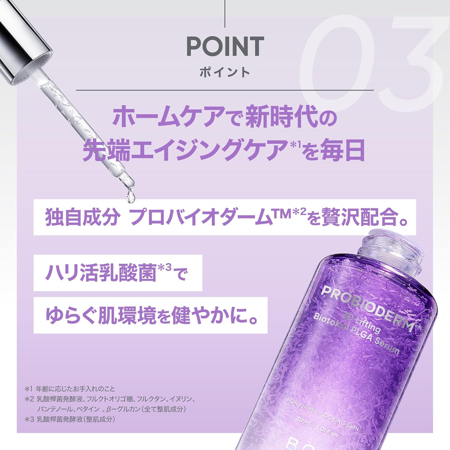 Este sérum avançado da marca coreana BOH (Bioheal BOH) faz parte da linha Probioderm™ 3D Lifting e utiliza a tecnologia PLGA (ácido poli-láctico/glicólico) juntamente com peptídeos, colagénio e fermentos probióticos para promover firmeza, elasticidade e textura suave na pele. É indicado para quem busca um tratamento de anti-idade que atue nas várias camadas da pele, oferecendo sensação de pele “preenchida” e revitalizada.