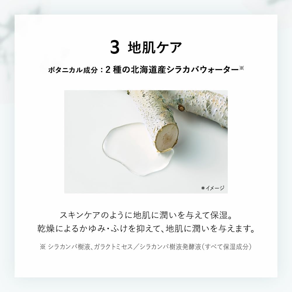 vegetal, seiva de bétula, líquido de fermentação de Galactomyces/seiva de bétula, glicirrizinato dipotássico, extrato de semente de uva, extrato do fruto de Terminalia ferdinandiana, óleo de semente de damasco, extrato do fruto de Rubus idaeus, extrato de borras de saquê, extrato de folha de oliveira, hidrolisado Colágeno, ácido hialurônico hidrolisado, ceramida NG, óleo de semente de macadâmia, dilauroil glutamato de sódio lisina, arginina, hialuronato de sódio, alquil (C12, 14) oxi-hidroxipropil arginina HCl, ácido de maçã, BG, DPG, fitoesterol PEG-30, lecitina hidrogenada, fitoesteróis, lisolecitina hidrogenada, cetanol, PPG-4 ceteth-20, óleo de rícino hidrogenado PEG-40, pentilenoglicol, hexilenoglicol, metossulfato de behentrimônio, cloreto de esteartrimônio, etossulfato de isoalquil (C10-40) amidopropiletildimônio, cloreto de diestearildimônio, aminopropil dimeticona, ácido lático, EDTA-2Na, etanol, isopropanol, tocoferol, benzoato de sódio, fragrância