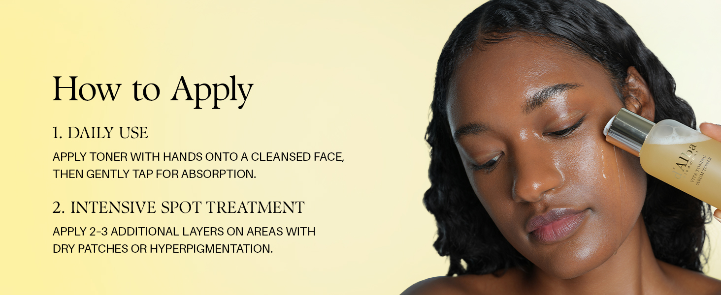 Uso diário: Aplique o tônico com as mãos sobre o rosto limpo e dê leves batidinhas para absorção.