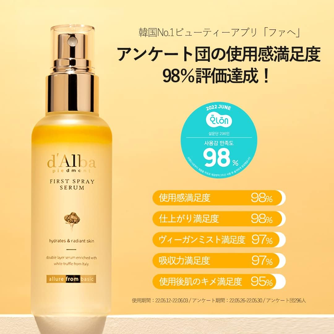 Uma névoa hidratante que proporciona hidratação rica com trufa branca italiana* e óleo vegetal para um acabamento de pele brilhante. Não apenas hidrata a superfície da pele, mas também hidrata o interior. Além disso, o TrupherolTM exclusivo da Dalva confere elasticidade à pele. Com uma névoa fina como a névoa, você pode usá-la sobre a maquiagem depois de lavar o rosto ou depois de tomar banho sem atrapalhar a maquiagem. *Extrato de Tuberculum magnatum (ingrediente hidratante) ✓Certificado vegano pela Itália (V-LABEL)