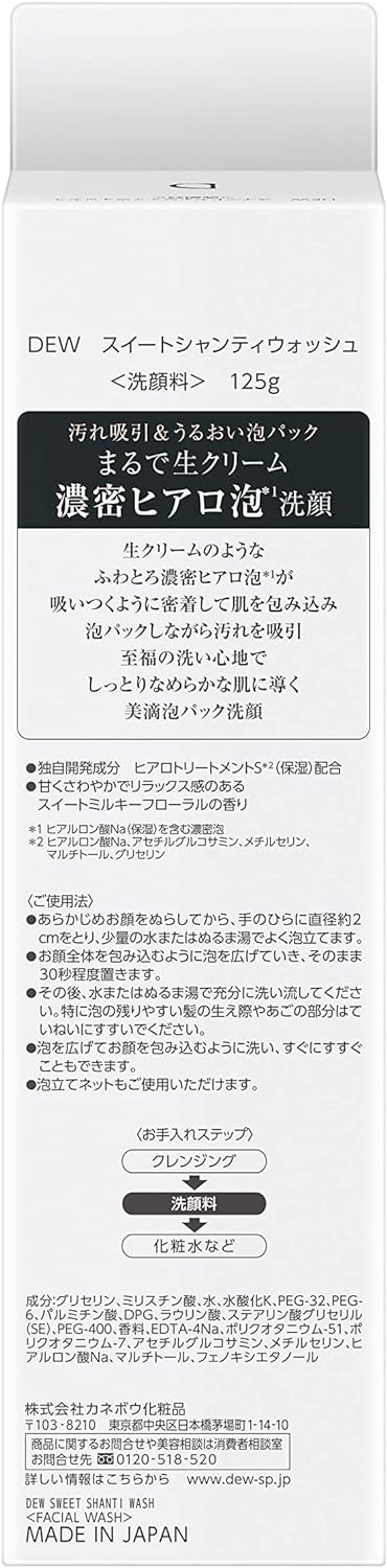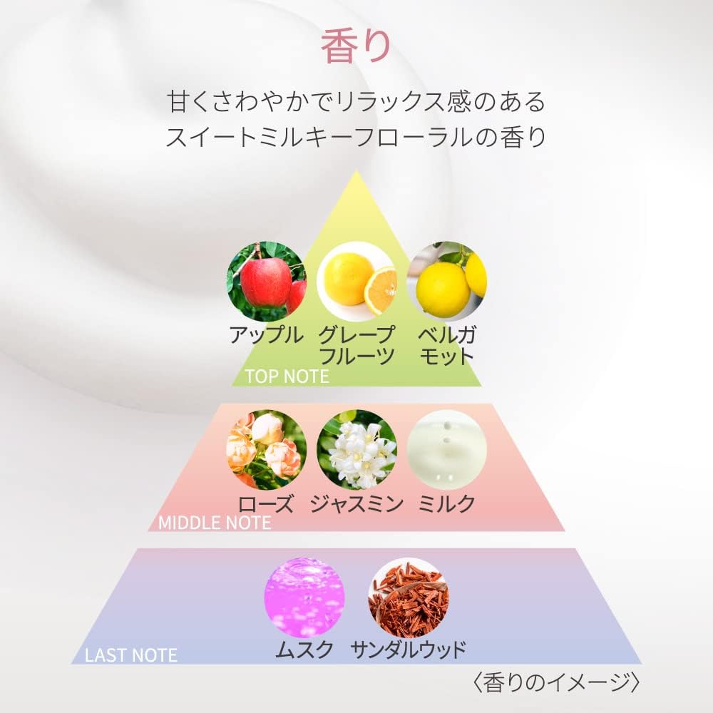 A espuma Hyalo*1 fofa e densa, como creme fresco, adere firmemente à pele e absorve a sujeira enquanto cria uma camada de espuma. Um lindo sabonete facial com espuma que deixa a pele úmida e macia com uma experiência de limpeza agradável . Contém ingrediente patenteado Hyalo Treatment S*2 (hidratante). Um aroma floral doce e leitoso que é doce, refrescante e relaxante .