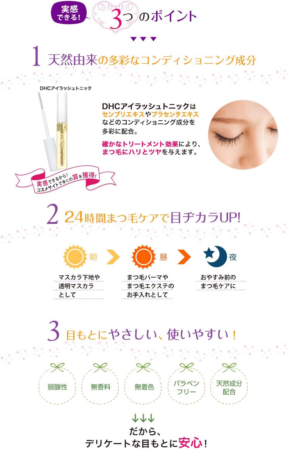 O DHC Eyelash Tonic é um sérum condicionador transparente para cílios, desenvolvido para fortalecer, hidratar e melhorar a aparência dos cílios frágeis ou propensos à queda. Ajuda a condicionar os cílios, reduzir a quebra e dar a aparência de cílios mais cheios e saudáveis.