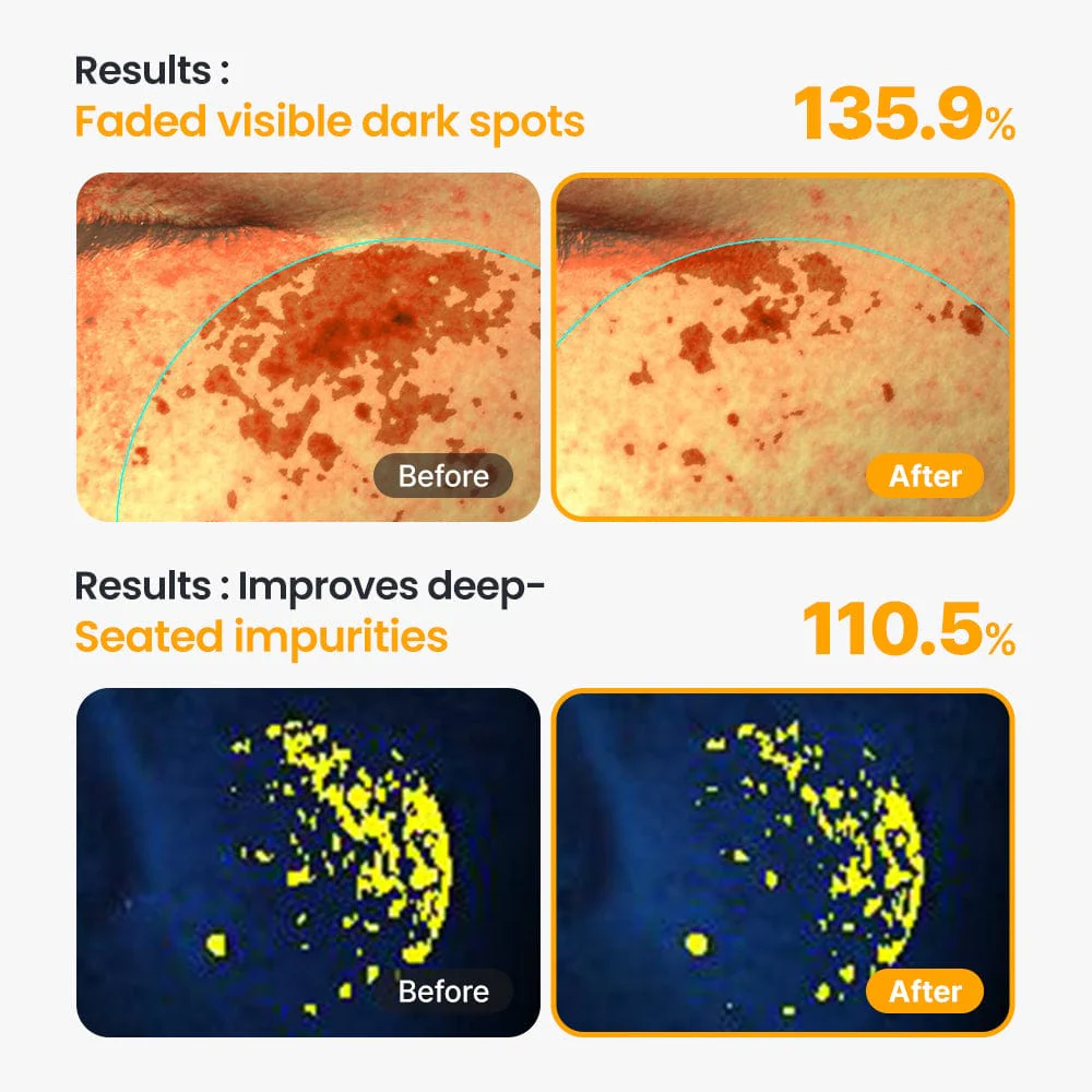 Rico em Vitamina C e Niacinamida, ajuda a clarear manchas solares e uniformizar o tom da pele.