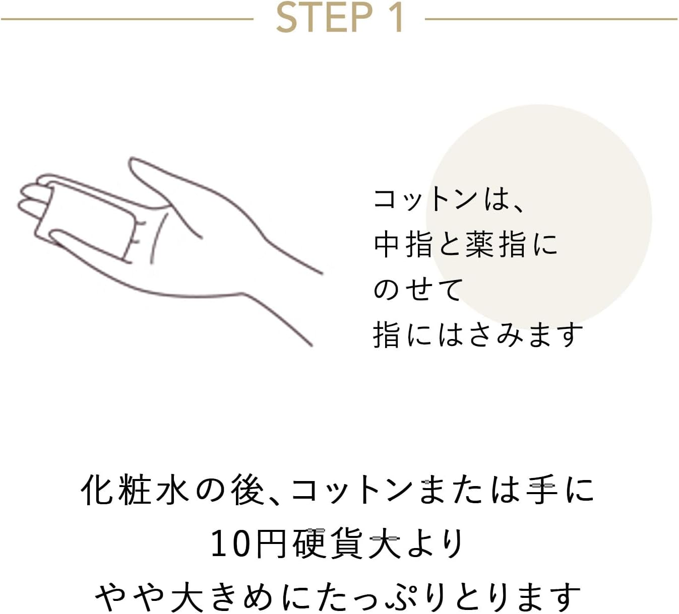 Após a loção, preencha o algodão ou a mão um pouco maior que a moeda grande de 10 ienes e misture bem. Recomendamos o uso de algodão para misturar uniformemente em sua pele