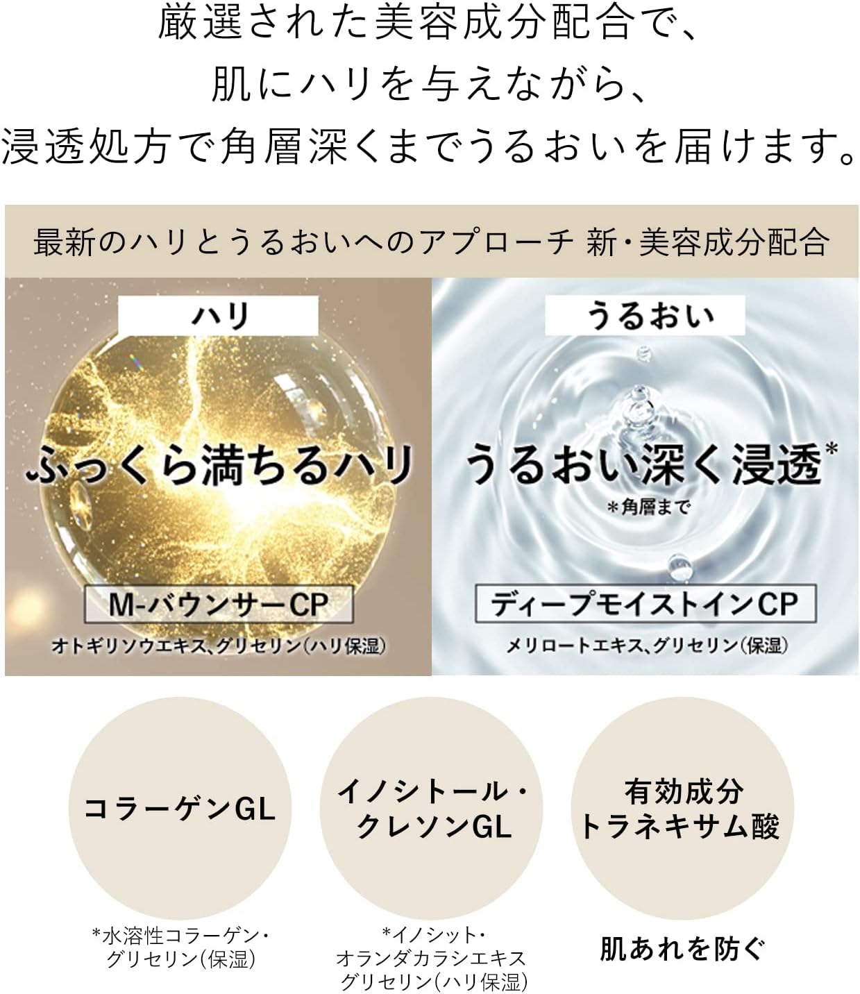 Leite medicamentoso para a pele que continua cheia de um “brilho” crocante e delicioso. Cuidados de envelhecimento: Para uma pele que permanece firme e bonita. Loção medicamentosa Os ingredientes de beleza cuidadosamente selecionados conferem firmeza à pele, enquanto a fórmula penetrante proporciona hidratação profunda aos cantos. Elimina pequenas rugas do ressecamento. (avaliação de eficácia testada) *Cuidados hidratantes de acordo com a idade