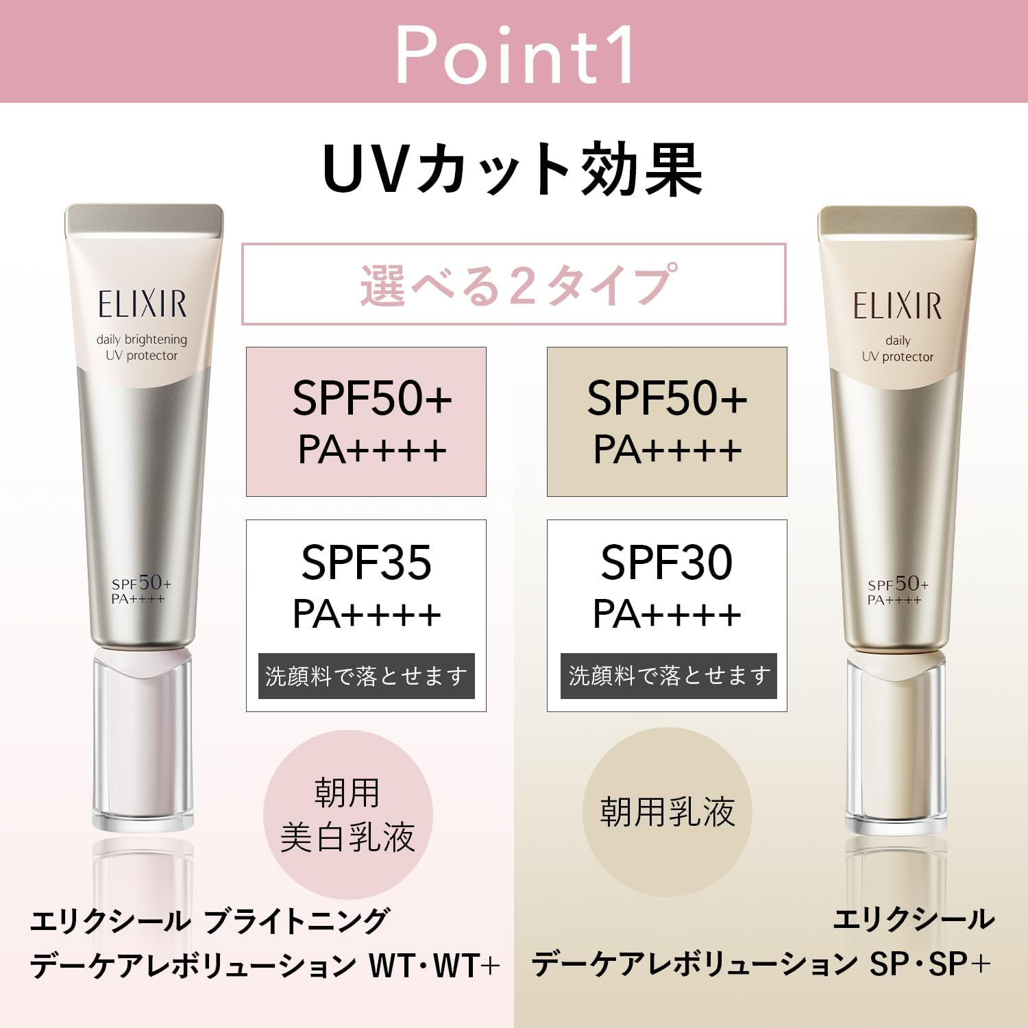 Elixir Brightening Day Care Revolution WT+ é uma emulsão matinal revolucionária que proporciona cuidados eficazes para clareamento e envelhecimento da pele. Projetado para uma rotina matinal sem complicações, este produto mantém sua pele “brilhante” durante todo o dia. Com 3 efeitos em 1, esta emulsão contém ácido m-tranexâmico, um poderoso ingrediente ativo clareador que suprime a produção de melanina, prevenindo manchas e sardas. Além disso, reduz pequenas rugas causadas pelo ressecamento, proporcionando uma aparência rejuvenescida e radiante. Este cuidado hidratante, especialmente formulado para a pele madura, garante uma tez impecável e luminosa ao longo do dia.