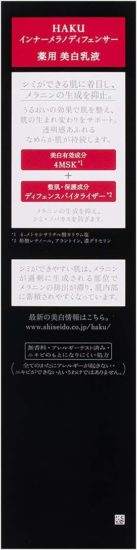 Uma emulsão clareadora medicamentosa que condiciona a pele com seu efeito hidratante e auxilia na renovação da pele . Contém o ingrediente ativo clareador 4MSK e o ingrediente condicionador e protetor da pele Defense Vitalizer. Mantém a pele limpa e suave.