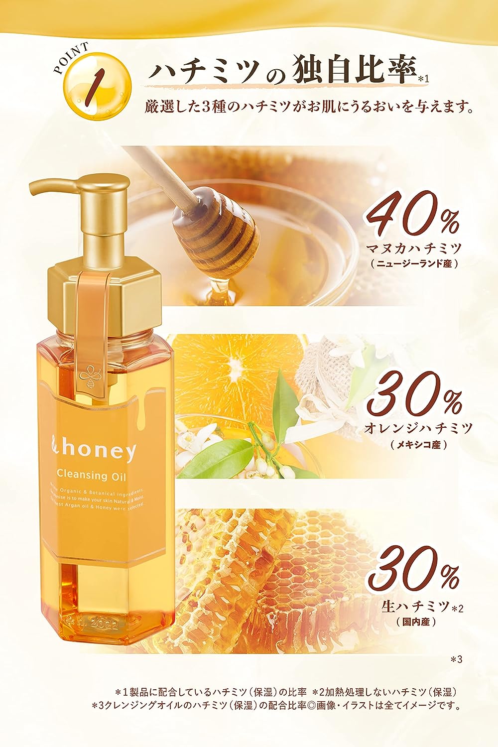 Este óleo de limpeza é um produto de beleza com mel que remove a umidade enquanto hidrata a pele , e mais de 90% do produto é composto por ingredientes hidratantes e condicionadores da pele, como mel, óleo de argan e ácido hialurônico orgânico . Contém ingredientes limpos Honey EX. Ele remove as células mortas da superfície da pele e remove a maquiagem, deixando a pele nua e lisa. Extensões de cílios OK. Mãos molhadas, ok. Patch testado. Fórmula sem aditivos e sem aditivos. Livre de corantes sintéticos, parabenos, álcool e testes em animais. Aroma doce de mel.