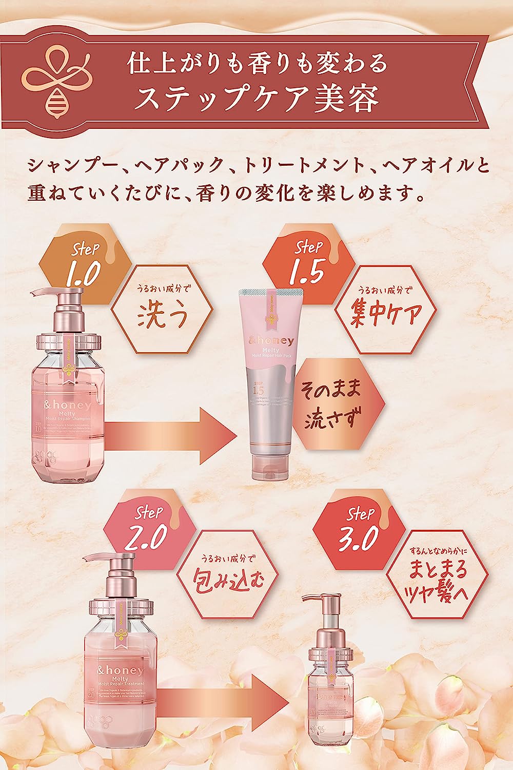O “New Honey Wavy Care” é formulado para cabelos com 14% de umidade, eliminando o frizz e mantendo os cachos com seu poder de retenção de água. Mais de 90% do produto é composto por ingredientes hidratantes e protetores, como óleo orgânico e ácido hialurônico, que hidratam profundamente os cabelos desde a raiz, deixando-os bonitos e macios. A fórmula é livre de aditivos. Possui um aroma de mel de rosa oriental.