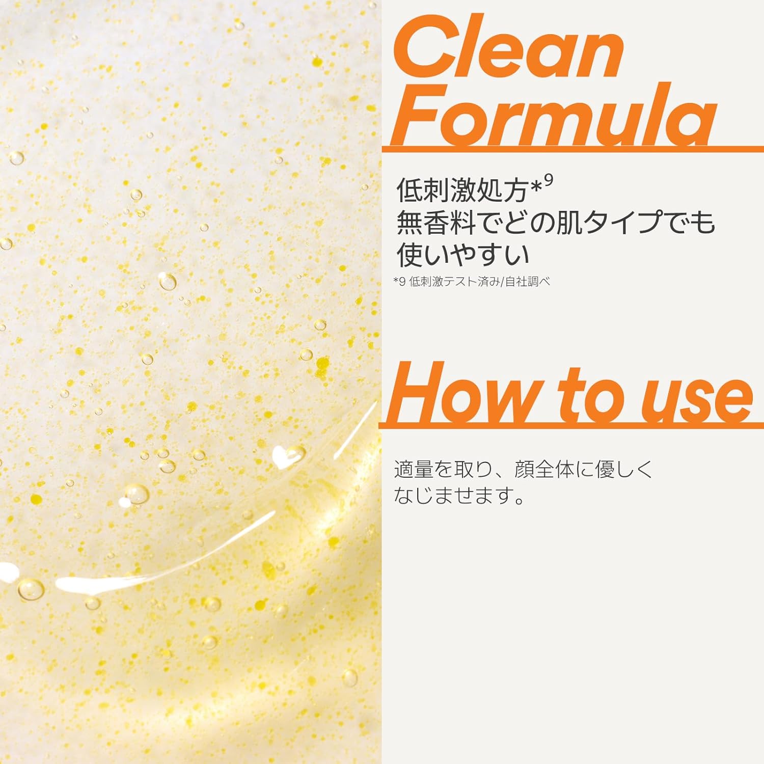 Água, Propanodiol, 1,2-Hexanodiol, Glicerina, Ácido 3-O-etil ascórbico (derivado de vitamina C), Butileno Glicol, Lisado de Fermento de Lactobacillus, Esqualano, Óleo de Semente de Girassol, Dextrina, Acrilatos/C10-30 Alquil Acrilato Crosspolímero, Triglicerídeo Caprílico/Cáprico, Trometamina, Goma Xantana, Gluconolactona, Extrato da Casca de Tangerina (Citrus reticulata), Pantenol, Niacinamida, Alantoína, Extrato da Raiz de Cenoura (Daucus carota sativa), Ácido Hialurônico, Pentilenoglicol, Metafosfato de Sódio, Silicato de Sílica Dimetil Siliada, Ciclodextrina, Tocoferol (vitamina E), Etilhexilglicerina, Madecassosídeo, Polímero Hidrogenado de Olefina C6-20, Protease (enzima esfoliante), Tetra-isopalmitato de ascorbila (derivado de vitamina C), Glutationa, Extrato de Achillea millefolium (mil-folhas), HDI/Trimetilol Hexilactona Crosspolímero, Beta-caroteno, Ácido Ferúlico.