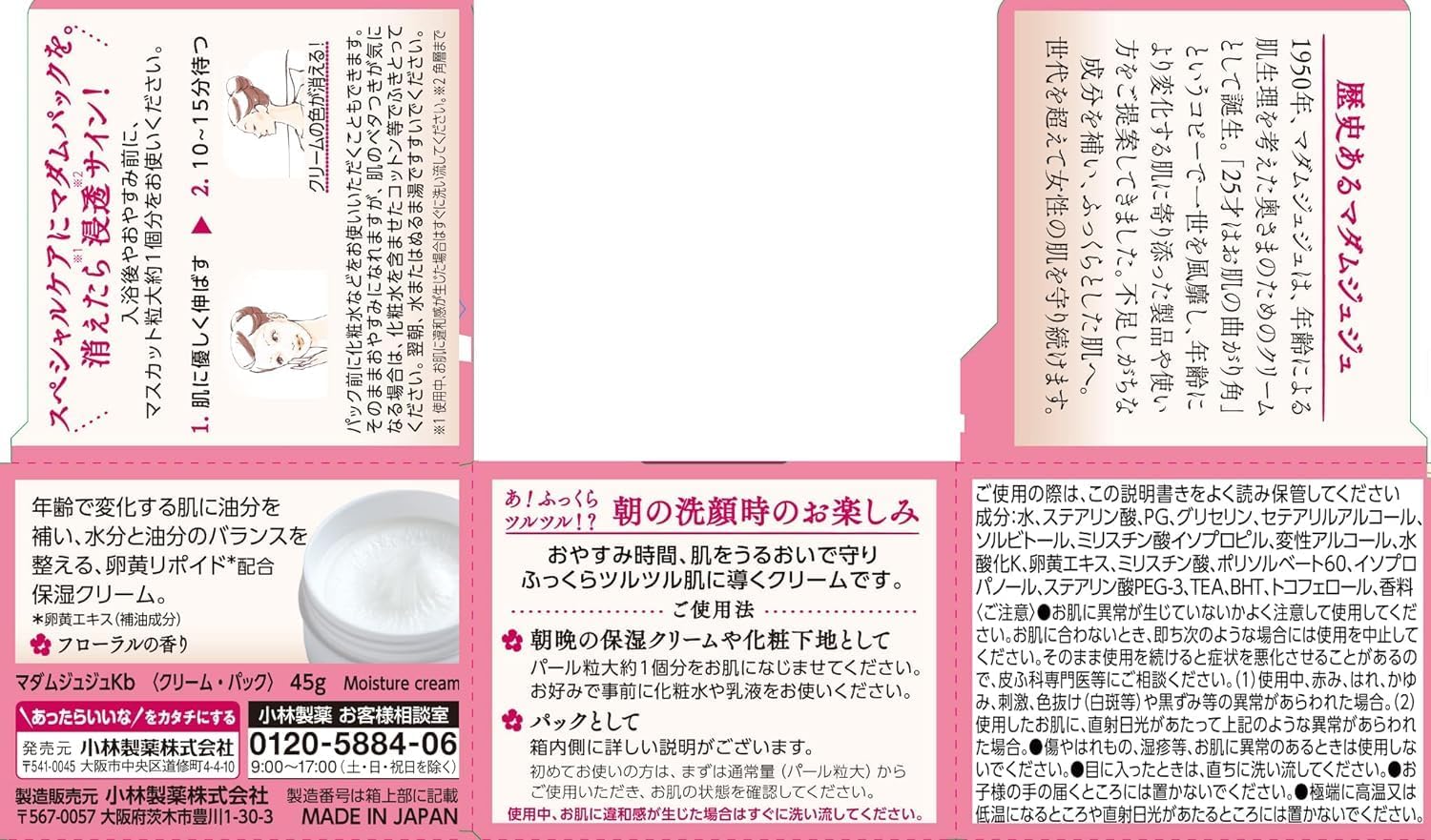 Com seu toque misterioso, o creme é elogiado por sua capacidade de hidratar profundamente a pele. Além disso, a versão “Koisuru Hada,” que possui uma fragrância floral suave, diferente da tradicional Madame Juju, também é muito apreciada.