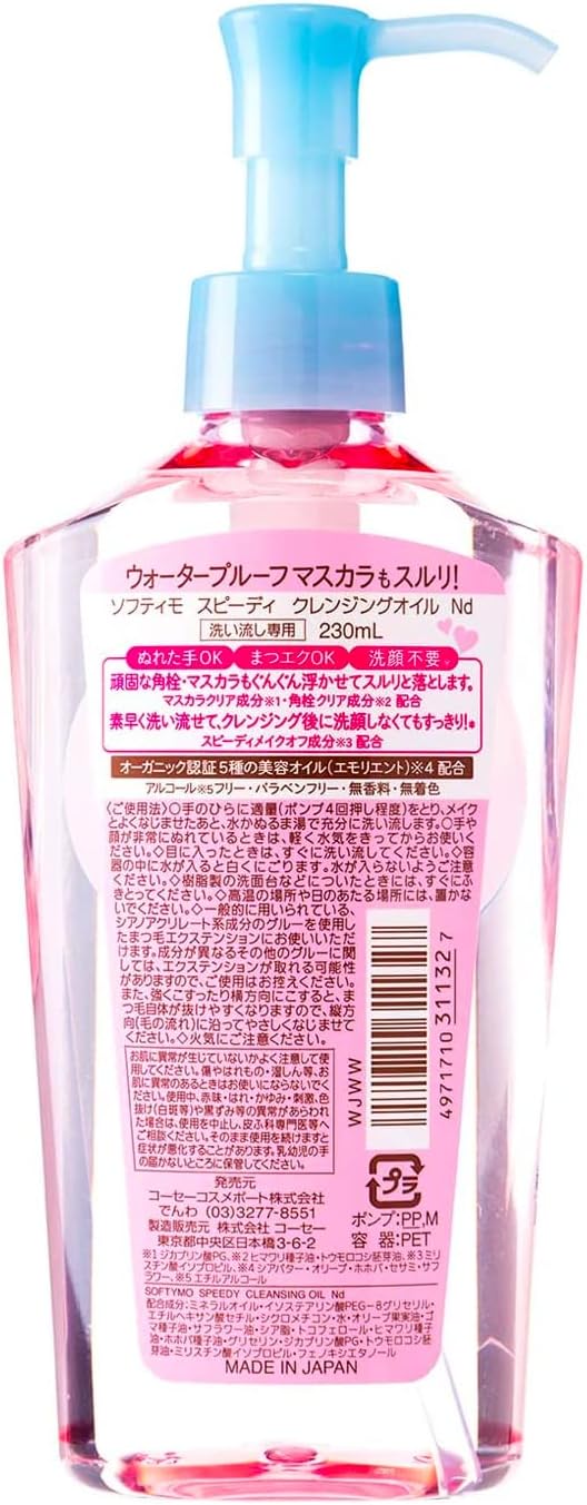 Kose Softymo Speedy Cleansing Oil não é chamado de speedy sem motivo! Esta fórmula leve remove suavemente e rapidamente a maquiagem e as impurezas que obstruem os poros quando a pele está úmida. Enxagua rapidamente sem deixar resíduos oleosos.