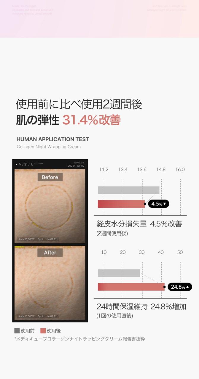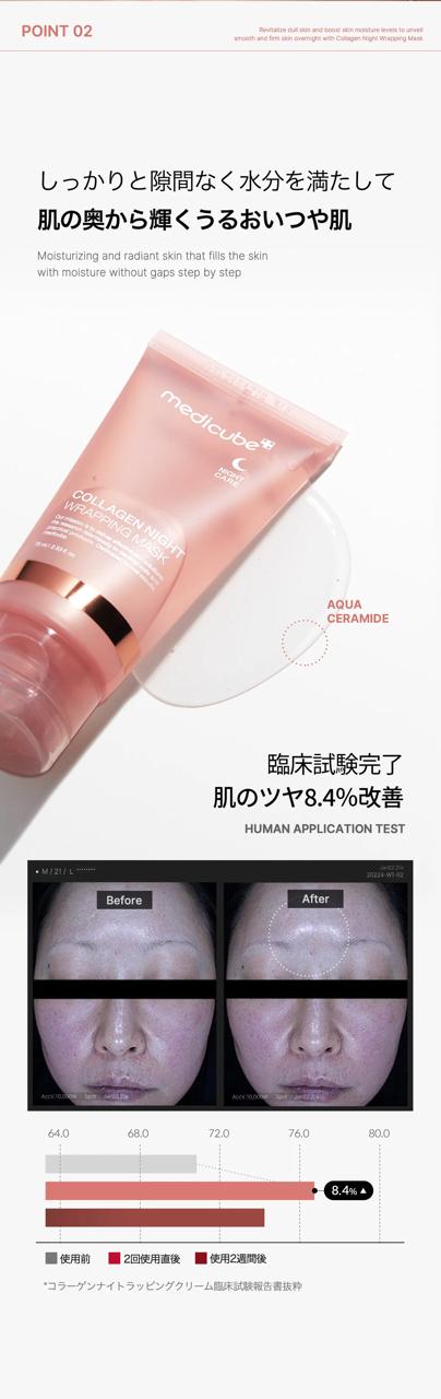 * Trecho do Relatório de Ensaio Clínico sobre a Máscara de Envolvimento Noturno de Colágeno da Medicube. Os resultados individuais podem variar.