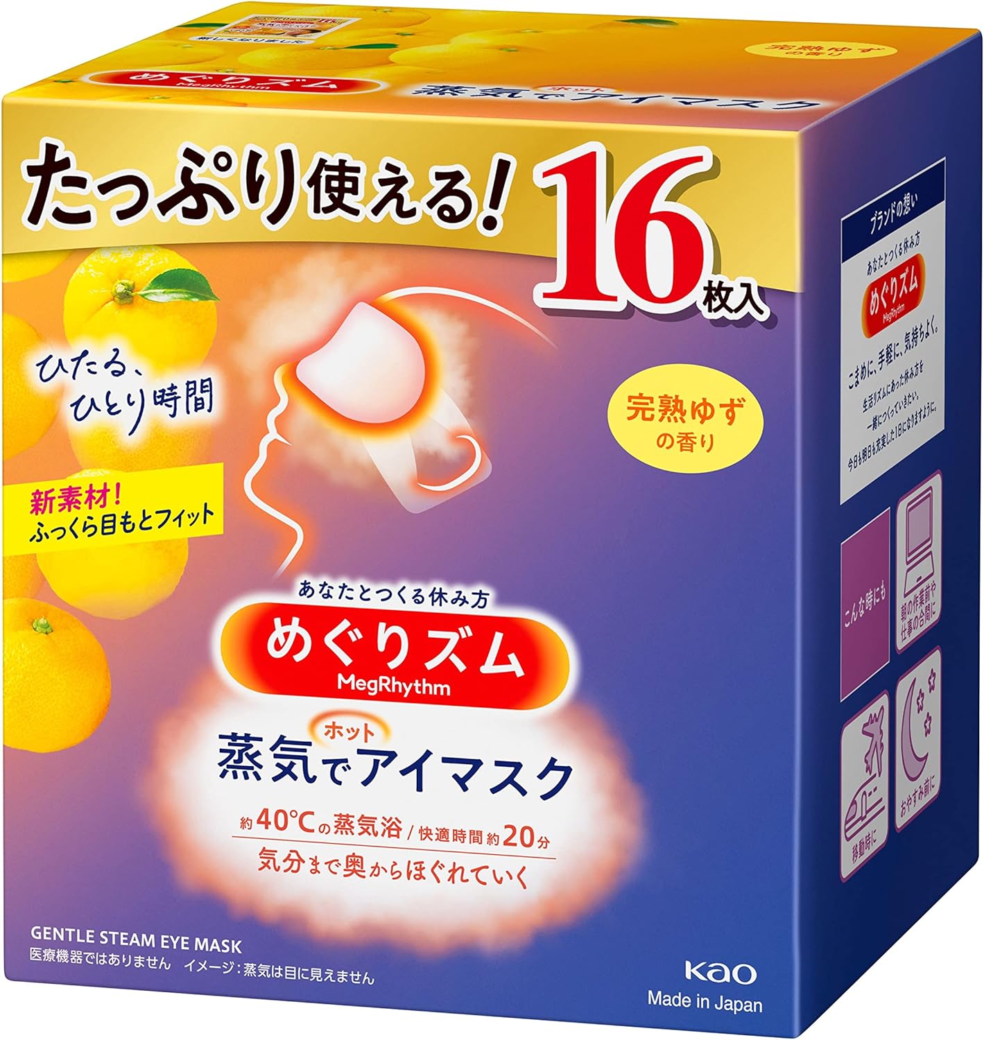 MegRhythm Steam Hot Eye Mask Yuzu scent 16 pieces