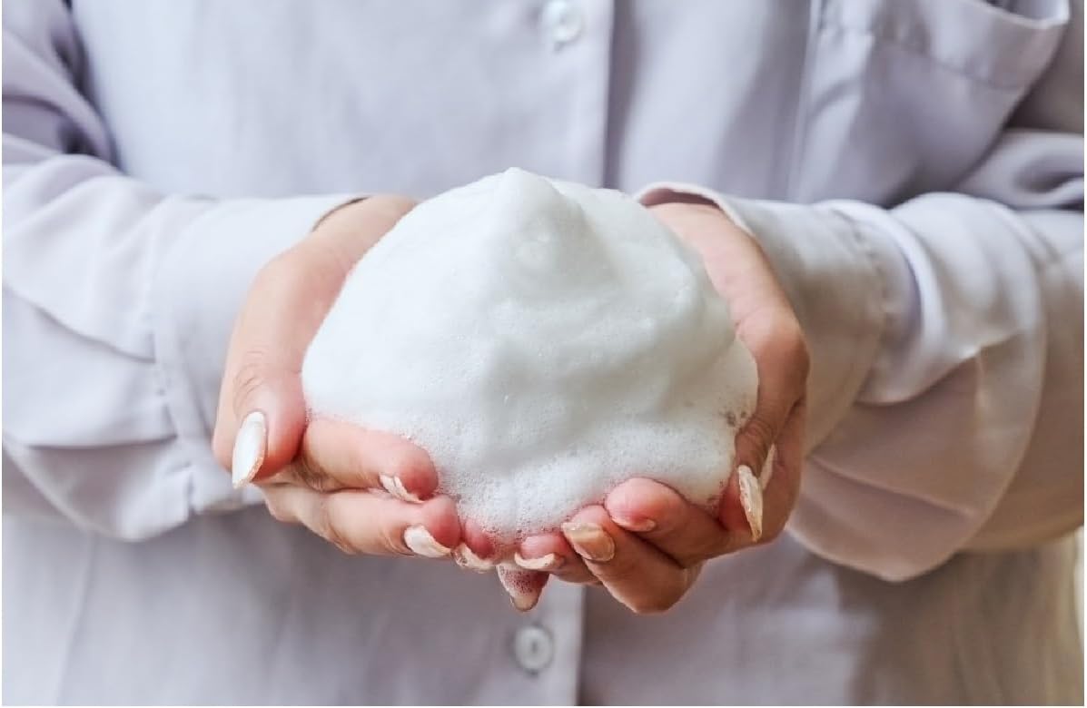 Pegue uma quantidade adequada (aproximadamente 2 cm) na palma da mão, ensaboe bem com água ou água morna e depois lave o rosto envolvendo todo o rosto. Em seguida, enxágue bem.