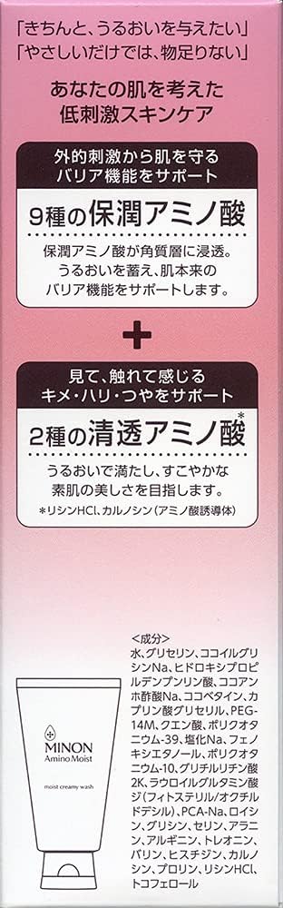 A marca Minon Aminoist para peles sensíveis é uma linha para peles sensíveis e tipos de pele seca, que se preocupam com o ressecamento, como ondulação e poeira. Formulado com 9 tipos de aminoácidos hidratantes, apoiando uma barreira para proteger a pele da estimulação externa, e um aminoácido puro que ajusta a textura e apoia a transparência da pele. pele.