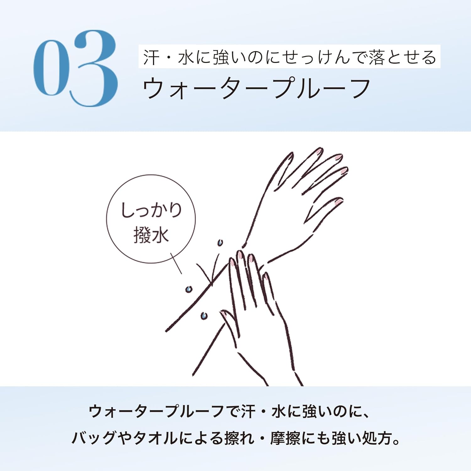 Ele contém ingredientes hidratantes derivados de plantas, como CICA (extrato de centella) e extrato de planta “dokudami”, para manter a pele confortável mesmo sob sol intenso.
