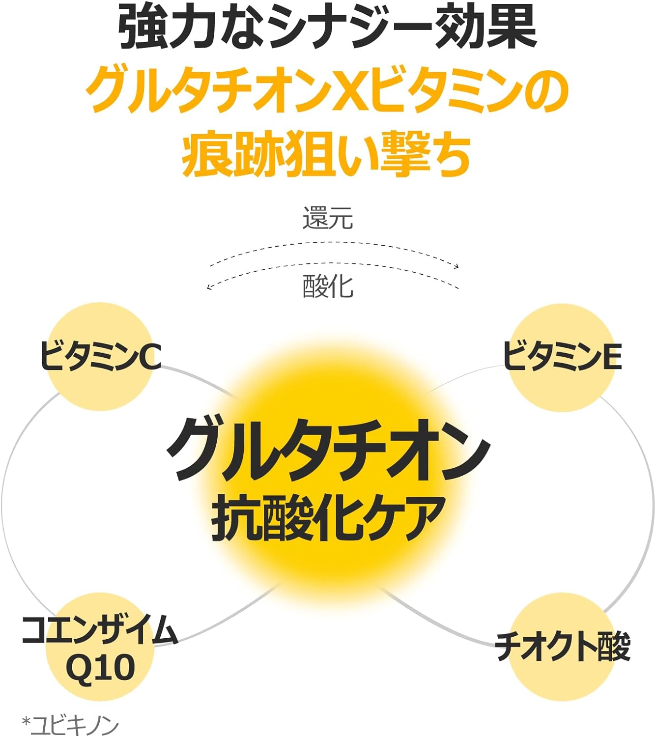 Para aumentar a eficiência da glutationa e proporcionar eficácia estável, formulamos ingredientes vitamínicos sinérgicos que interagem com antioxidantes de oxidação e redução para construir uma rede antioxidante e fornecer glutationa de forma mais eficaz.