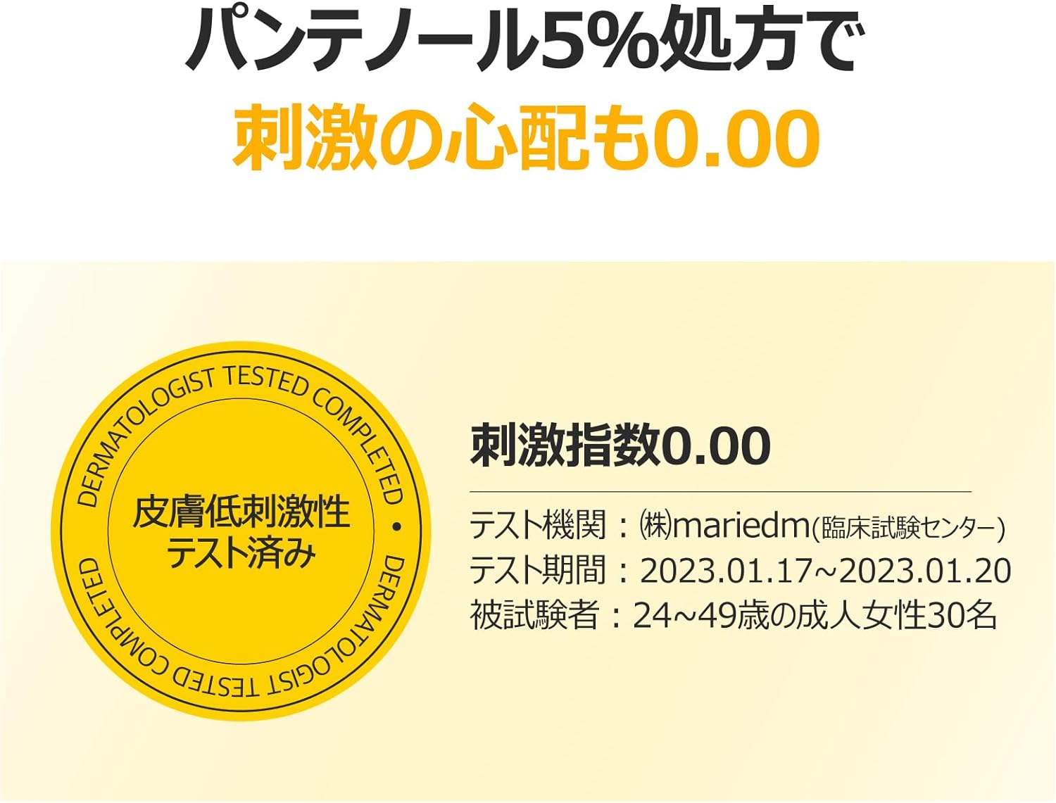A fórmula de 5% de pantenol foi submetida a um teste hipoalergênico e apresenta 0,00 preocupação com irritação.