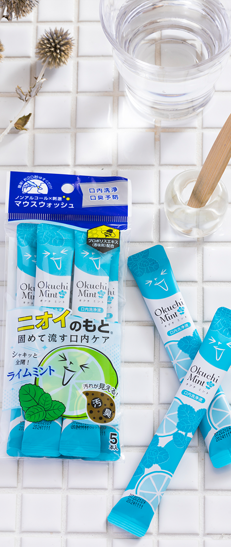 Okuchi シリズ é um enxaguante bucal inovador que remove sujeira e resíduos, solidifica proteínas – uma das principais causas do mau hálito – e as elimina de forma eficaz.