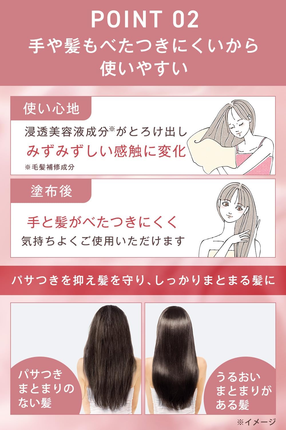 Água, dimeticona, cetanol, dietilhexanoato de neopentilglicol, isopentil diol, esterol de soja, (dihidroximetilsililpropóxi) seda hidrolisada com hidroxipropil, neopentanoato de isodecil, PEG-12 dimeticona, maltitol, arginina, glicina, ácido aspártico, serina, treonina, valina, alanina, prolina, flúor Fenilalanina, isoleucina, histidina, PCA, PCA-Na, lactato de sódio, sorbitol, PPG-10 metilglicose, feniltrimeticona, metossulfato de behentrimônio, BG, estearoxihidroxipropilmetilcelulose, estearato de glicerila (SE), cloreto de Cetri Monium, ácido cítrico, EDTA-2Na, fenoxietanol