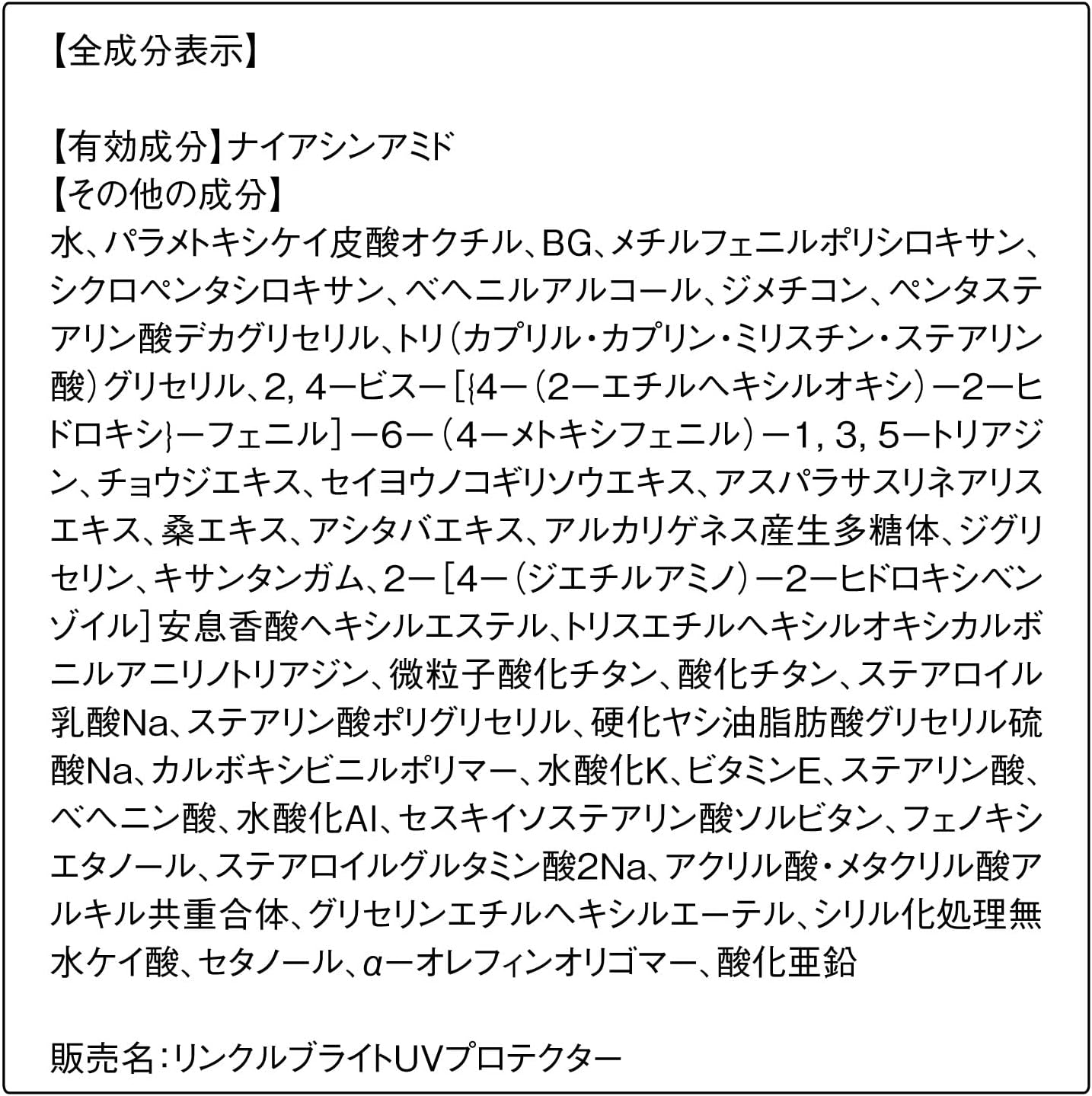 Ingredientes ativos: Niacinamida (outros ingredientes) Água, paramoxilicida, octil, BG, metilfenilpolissiloxano, ciclopentasiloxano, álcool behenílico, dimeticona, pentastearato decagliceril, tri (capri capri capri capri caprino, milistina, ácido esteárico esteárico) gliceril, 2, 2,4- bisil. 4-(2-Etilhexil oxi)-2-Hidroxi}-Fenil]-6-(4-metoxifenil)-1,3,5-Triatina, Extrato de Gowdi, Sayofil, Extrato Linear de Asparasse, Extrato de Amoreira, Extrato de Asitaba, Genesse Alcalina Polissacarídeo cru, diglicerina, xantano tungum, 2-[4-(4-(4-(dietil amino -2-hidroxibenzoil] hexigosteel, triseil hexil oxicarbonilanilinotriazina, óxido de titânio em partículas finas, óxido de titânio, esteroil lactato de sódio, estearato de poligliceril, coco endurecido óleo, gliceril sulfato de sódio, polímero de carboxivinila, hidróxido de potássio, vitamina E, ácido esteárico, ácido esteárico, ácido fenílico, ácido veneno, hidróxido de Al, sesquisoestearato de sorbitano, fenoxietanol, 2 estearoil glutamato de sódio, ácido copolímero de ácido alquil metacrílico, glicerina etil hexil. éter, ácido silicato anidro sililado, cetanol, oligômero de α-olefina, óxido de zinco