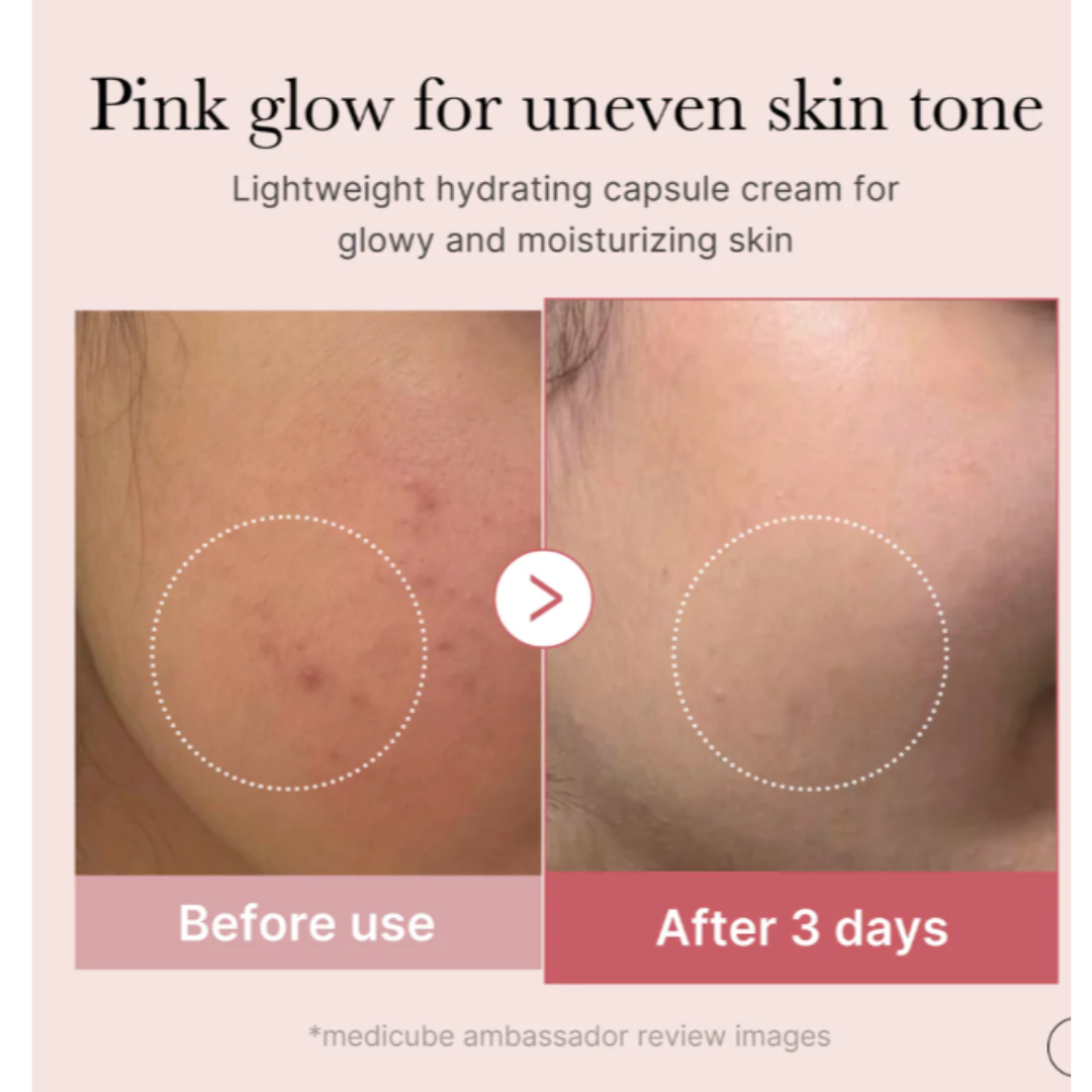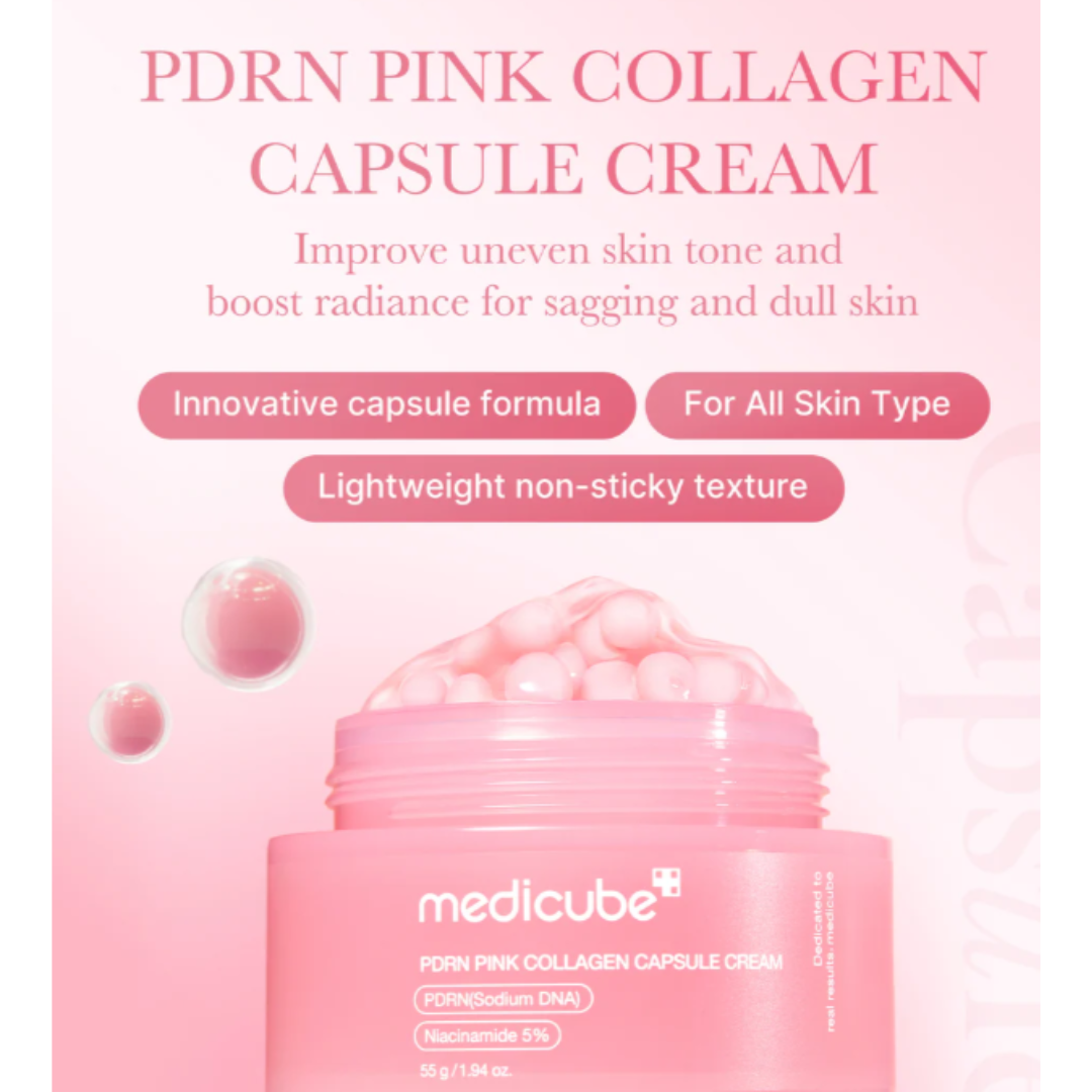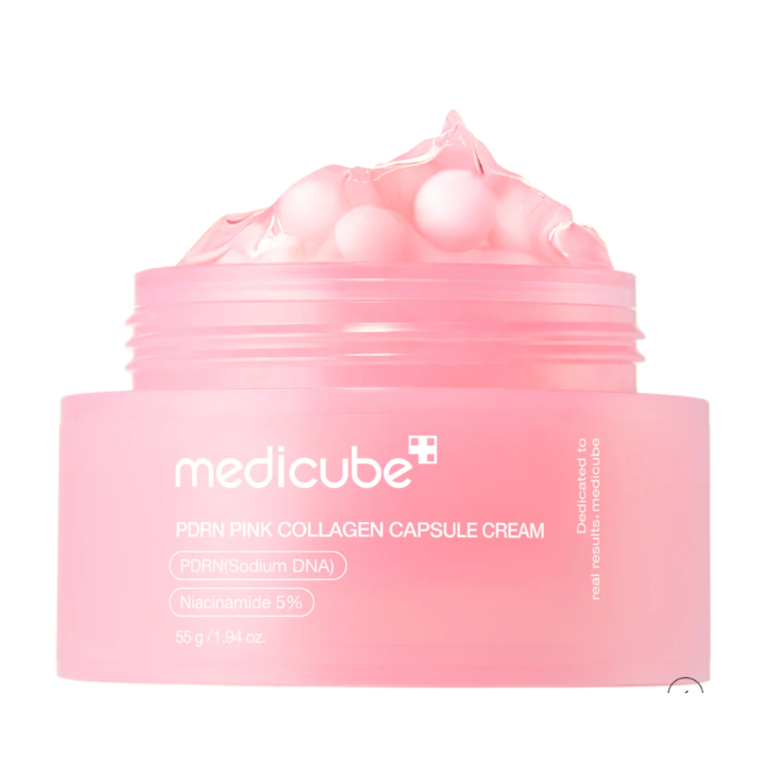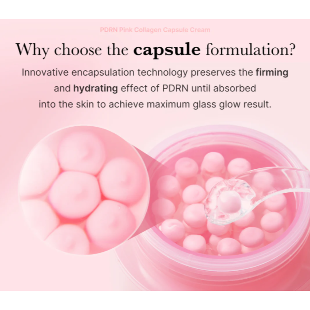 Creme facial com cápsulas de colágeno rosa que promovem firmeza, hidratação intensa e revitalização da pele.