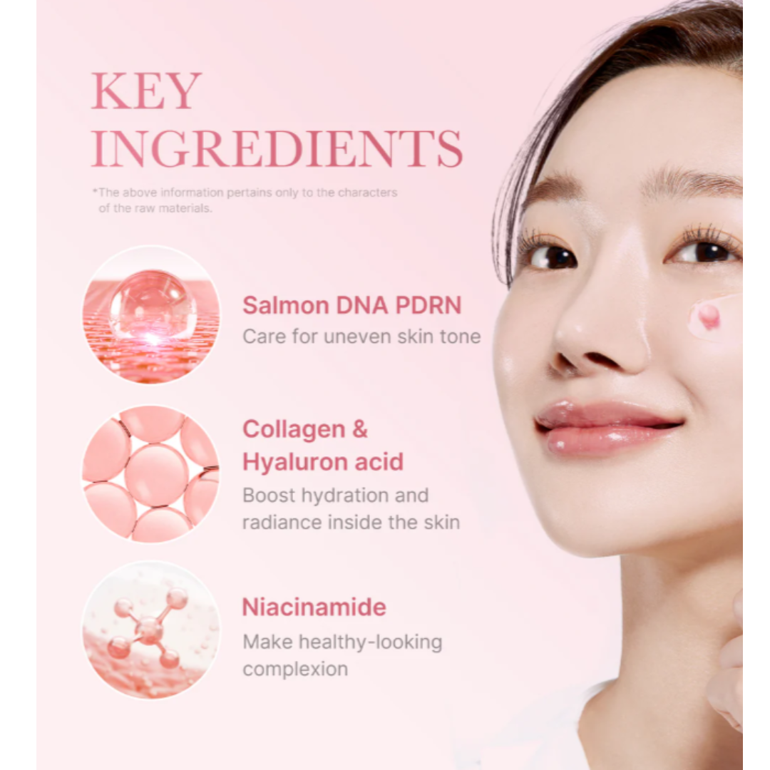 Água, glicerina, butilenoglicol, propanodiol, niacinamida, poliacrilato de sódio, poliacrilato-13, PDRN, colágeno hidrolisado, ceramida NP, adenosina, óleo de semente de jojoba, betaína, madecassosídeo, ácido hialurônico, alantoína, extrato de centella asiática, carbômero, etilhexilglicerina, caprilil glicol, tocoferol.