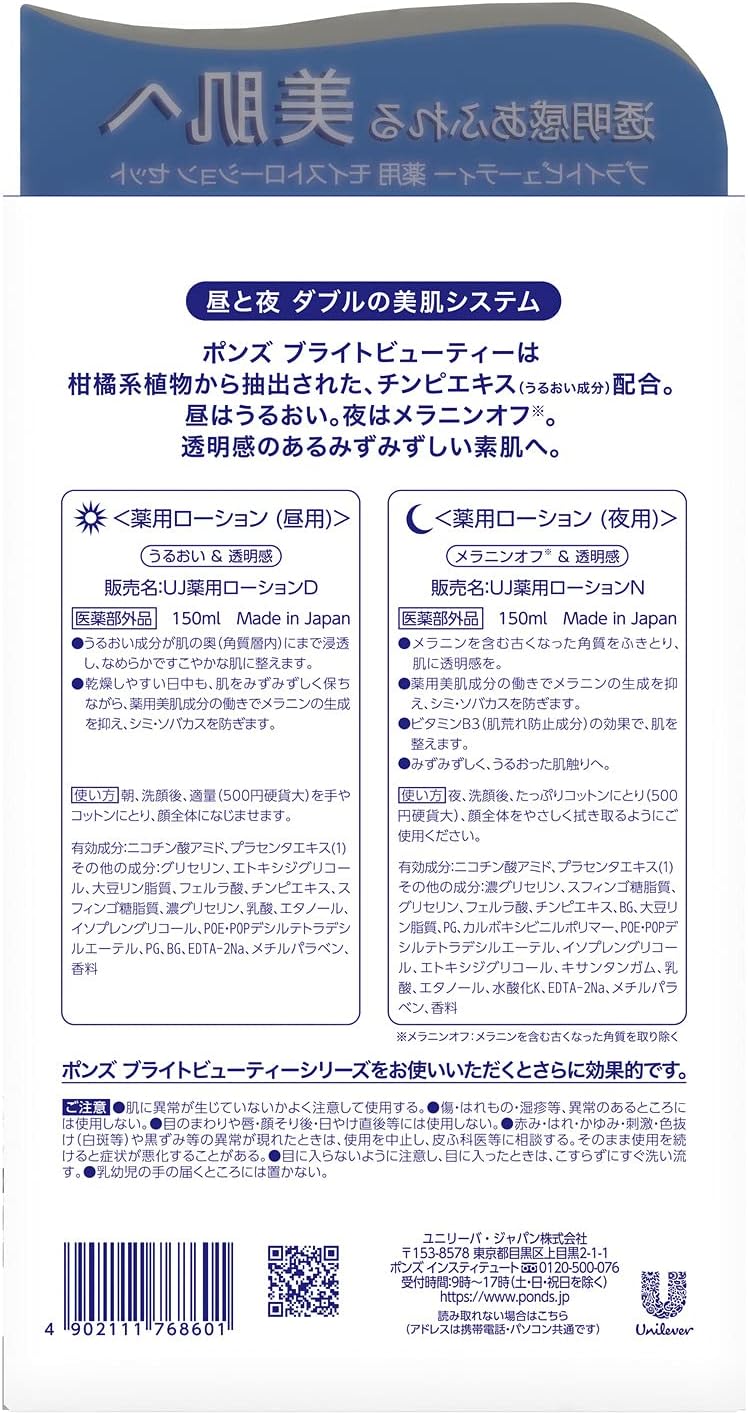 A linha PONS BRIGHT BEAUTY oferece uma experiência hidratante contínua para a pele, mantendo-a suculenta durante o dia e a noite. Este conjunto de leite medicamentoso para uso diurno e noturno proporciona uma sensação revigorante, penetrando profundamente nos poros para prevenir manchas de queimaduras solares e sardas.