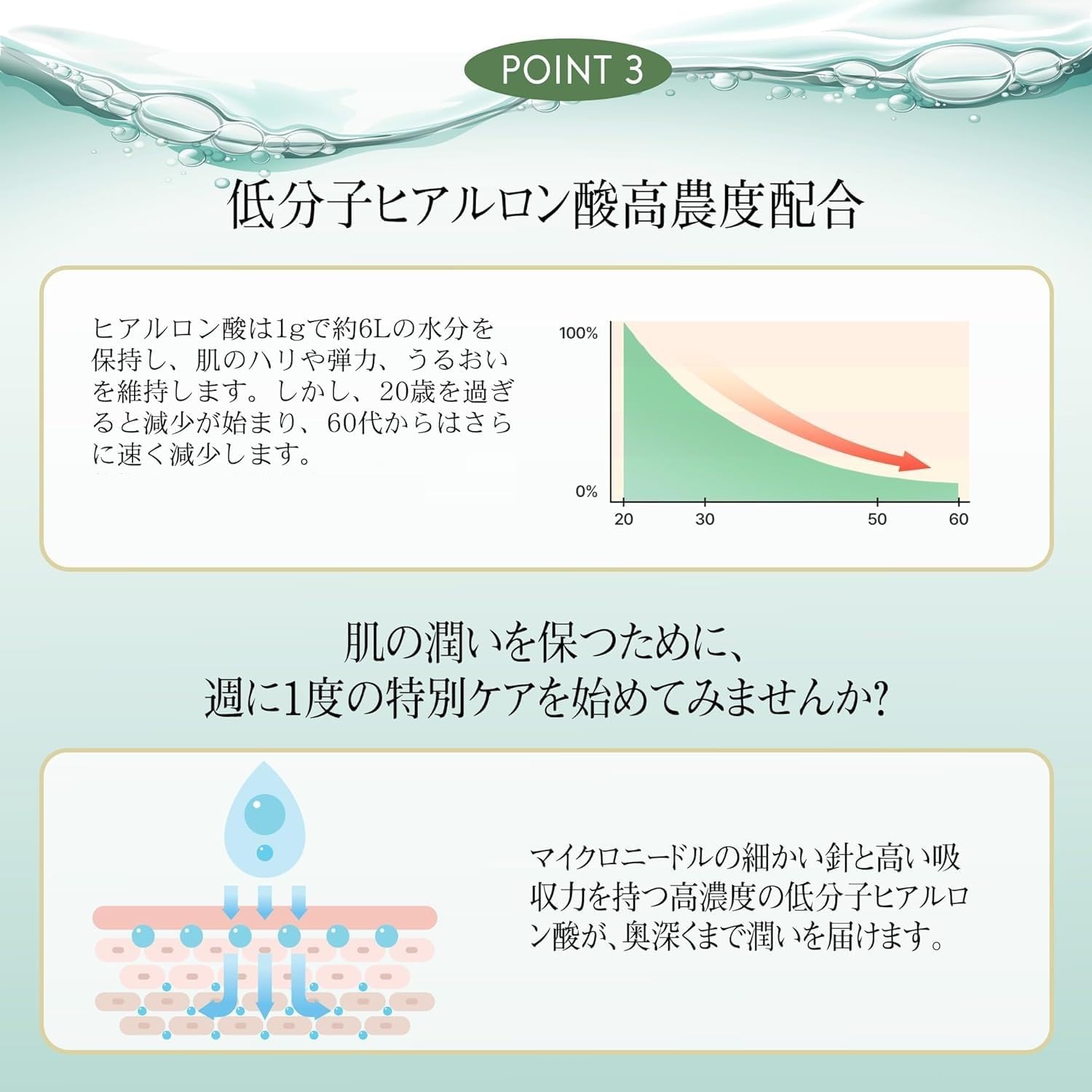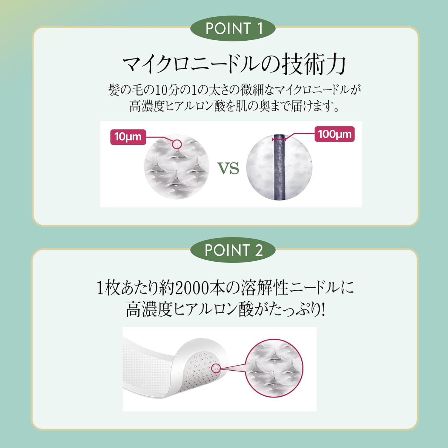 O ácido hialurônico é conhecido por seu poder hidratante, mas devido ao tamanho das suas moléculas, é difícil penetrar na pele apenas com a aplicação de um sérum ou creme. Este adesivo de microagulhas foi desenvolvido para entregar o ácido hialurônico profundamente na pele (camada do estrato), proporcionando hidratação eficaz.