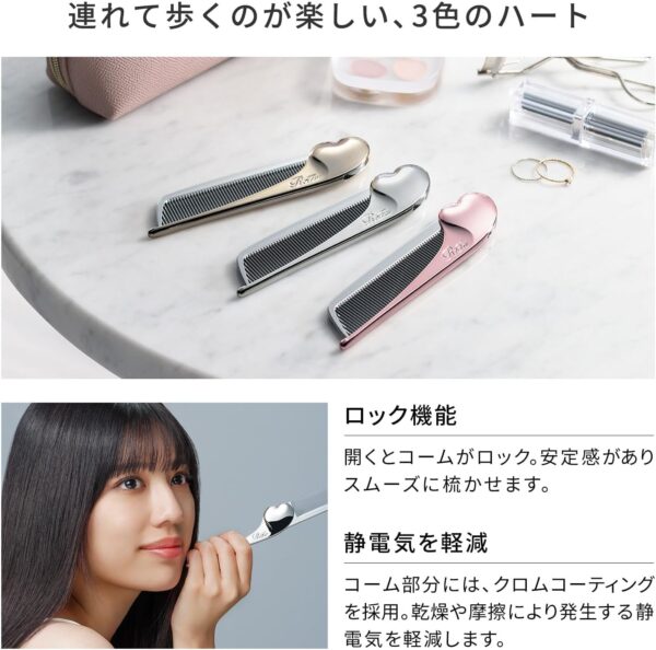 ReFa HEART COMB Aira (Silver) é um pente dobrável de luxo da MTG, projetado especificamente para retoques rápidos e finalização de penteados, com foco especial na franja e nos fios laterais.
