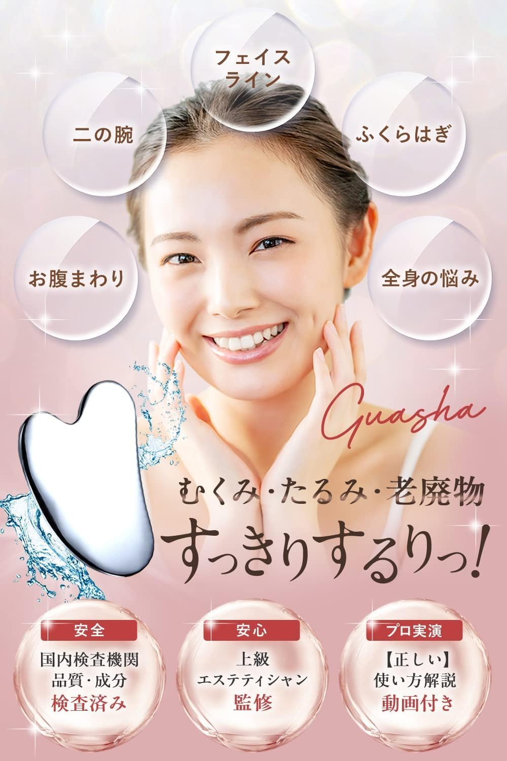 A ferramenta geralmente é feita de materiais como jade, quartzo rosa ou outros cristais, e possui bordas lisas. Durante uma sessão de gua sha, o praticante aplica pressão suave à pele enquanto move a ferramenta em movimentos repetitivos ao longo de áreas específicas do corpo, como o rosto, pescoço, ombros, costas e membros.