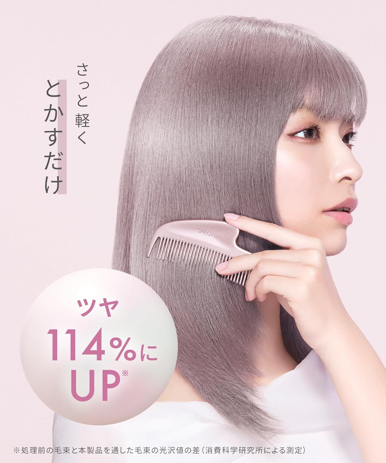 O material metálico polido alinha as cutículas do cabelo, refletindo a luz e eliminando o aspecto opaco.