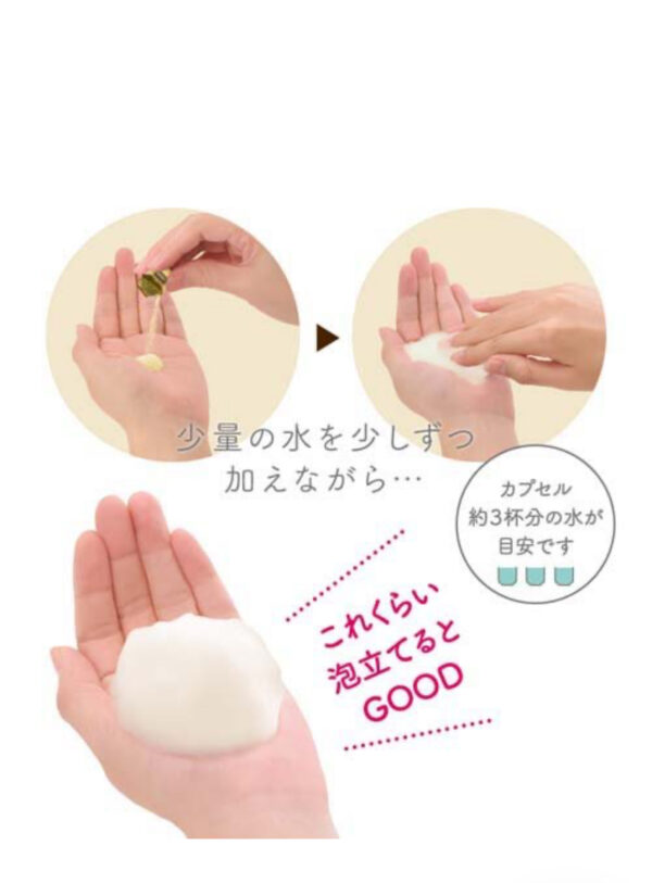 Adicione algumas gotas de água ao pó e esfregue as mãos para criar uma espuma leve e densa.