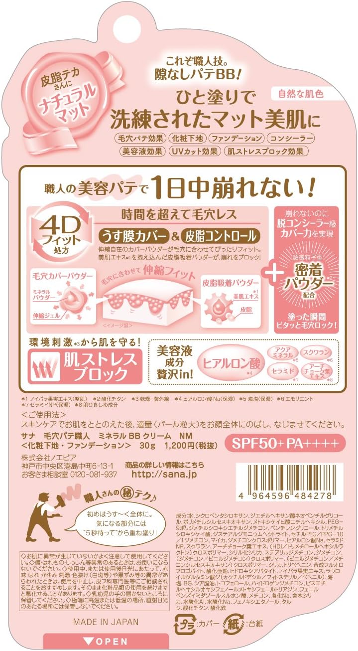 corretivo e mantém a pele perfeita e bonita o dia todo . O segredo é o “beauty putty”, uma técnica exclusiva dos artesãos de pore putty que combina uma “prescrição de ajuste 4D” com um “bloco de estresse da pele” . Esconde completamente os poros ao mesmo tempo que absorve o excesso de sebo e evita o ressecamento, por isso permanece no lugar o dia todo e protege a pele dos estímulos ambientais, como os raios UV e o ressecamento. Além disso, o pó de adesão de partículas ultrafinas adere 5 segundos após a aplicação. Ele bloqueia firmemente os poros e fornece cobertura em nível de corretivo que não se desfaz, mesmo quando aplicado em camadas. Um tom de pele natural com um acabamento mate suave . Contém ácido hialurônico . Complete sua maquiagem base com apenas um frasco.