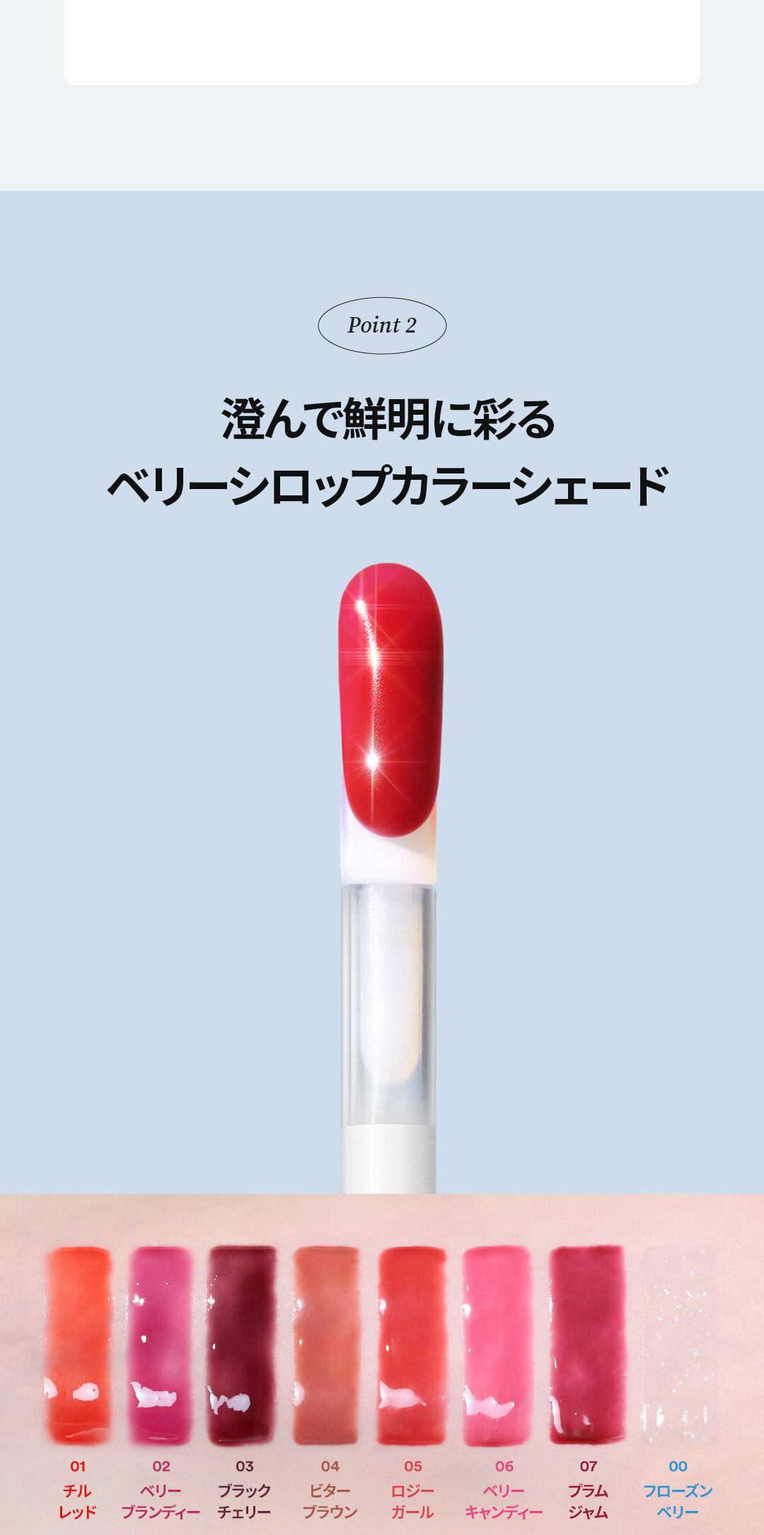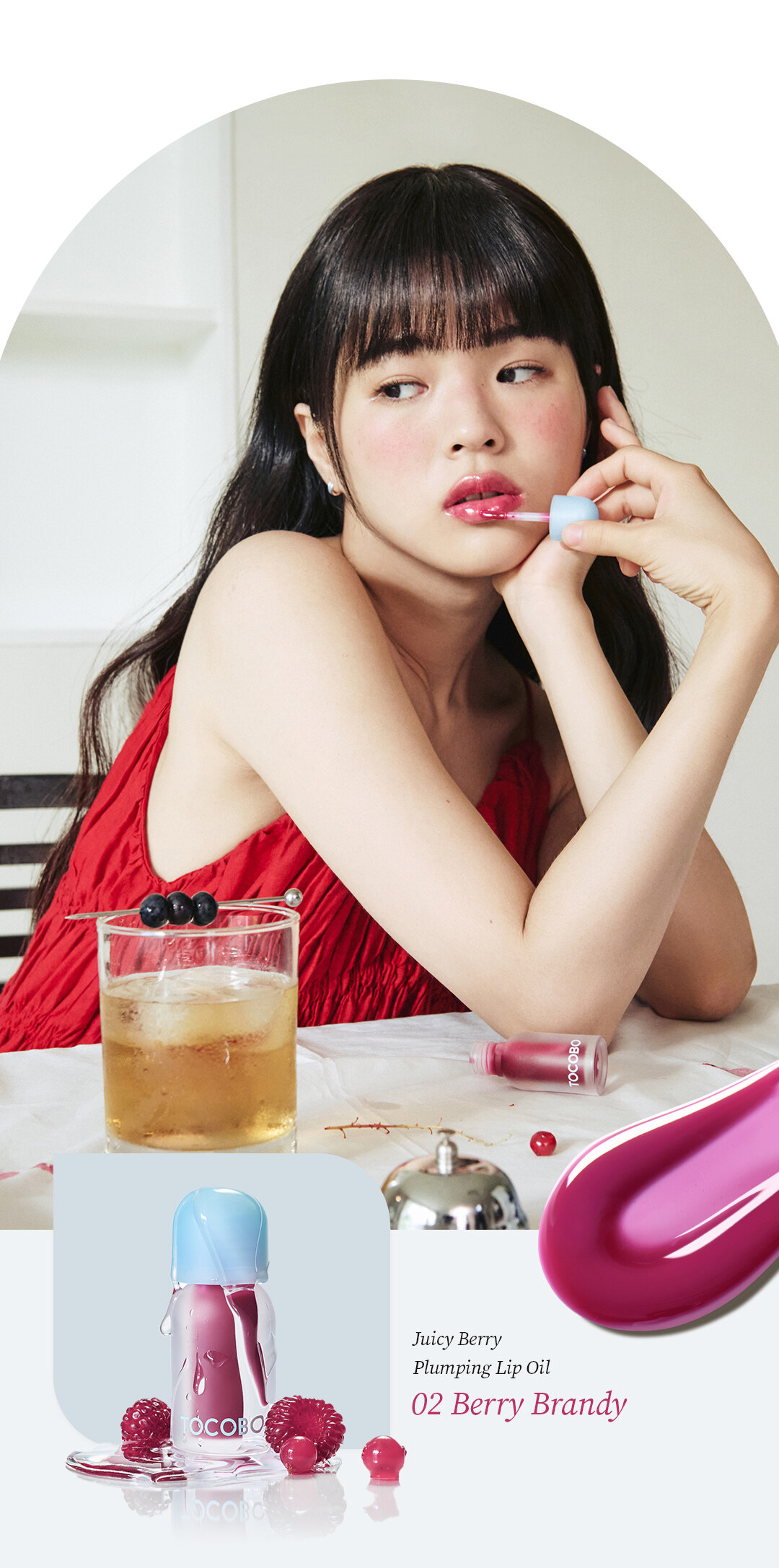 Certificado pelo Instituto Coreano de Certificação Vegana, o óleo labial é formulado com uma base de óleo polimérico que forma uma camada transparente nos lábios, enquanto óleos vegetais, como azeitona, semente de damasco, semente de camélia, prímula e óleo de argan, penetram para manter a umidade e cuidar da esfoliação, deixando os lábios macios e úmidos. Além disso, o extrato de amora confere vitalidade saudável, o extrato de mirtilo nutre e o extrato de safira cria um visual misterioso nos lábios.