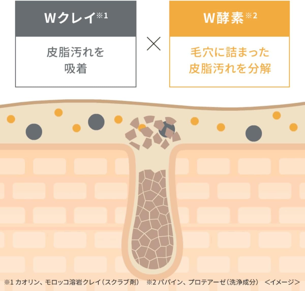 Água, trometamina, DPG, sorbitol, trealose, manitol, cocamidopropil betaína, lauril hidroxissultina, (acrilato/acrilato de alquila (C10-30)), polímero cruzado, caulim, argila vulcânica marroquina, papina, protease, ácido lático, ácido salicílico, gluconolacona, cosidídeo de ascolglicina, ácido 3-O-etil ascórbico, fosfato ascórbico de sódio, glicirrizinato de sódio, extrato de Tvoca, extrato da folha de Arch Chalk, extrato da folha de Aloe vera, extrato do fruto de Yusu, BG, lodo marinho, dextrina, hidroxietilcelulose, fosfato de sódio, EDTA-4Na, fenoxietanol