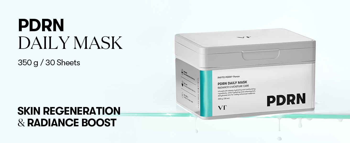 O VTCOSMETICS PDRN+ Daily Mask é uma máscara facial em tecido ultrafino e leve, embebido em um potente sérum de rápida absorção. Desenvolvida com PDRN vegetal derivado do ginseng selvagem coreano, oferece regeneração cutânea e viço profundo sem fragrâncias artificiais