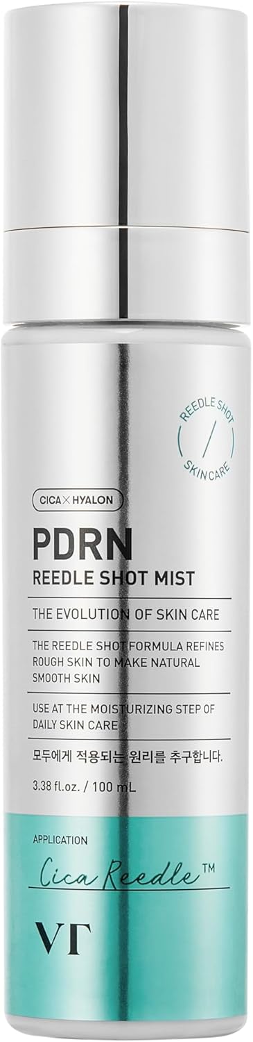 O VT Cosmetics PDRN Reedle Shot Mist é um spray facial sofisticado que combina a potente tecnologia CICA REEDLE® (micro-esferas de silício) com PDRN vegetal de alto poder — derivado do ginseng coreano — em um formato leve e diáfano, ideal para repor hidratação e viço instantâneos na pele. Essa névoa ultrafina foi formulada para agir como um “boost de glow e elasticidade” ao longo do dia, reorganizando a textura da pele e reforçando sua barreira natural com sutileza e praticidade