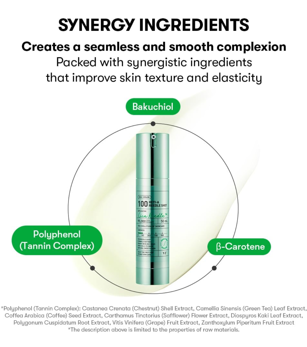 O VTCOSMETICS Reti-A Reedle Shot 100 é um sérum inovador da linha Reti-A da VT Cosmetics, desenvolvido para promover uma pele mais suave, uniforme e radiante. Utilizando tecnologia avançada de entrega dérmica, este produto oferece benefícios semelhantes aos tratamentos de microagulhamento, com a conveniência de um cuidado domiciliar.